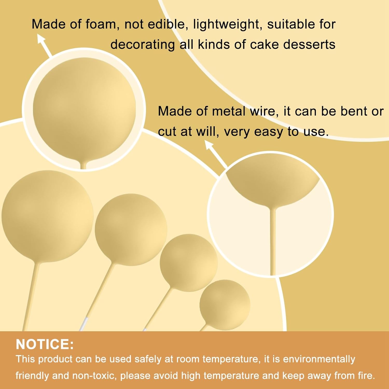- Premium Material: These Ball Cupcake Toppers are made of foam and wire. Safe to decorate food at room temperature, such as cake or dessert decorating use, or cupcakes, fruits, cheese and any dish and appetizer you want to decorate.