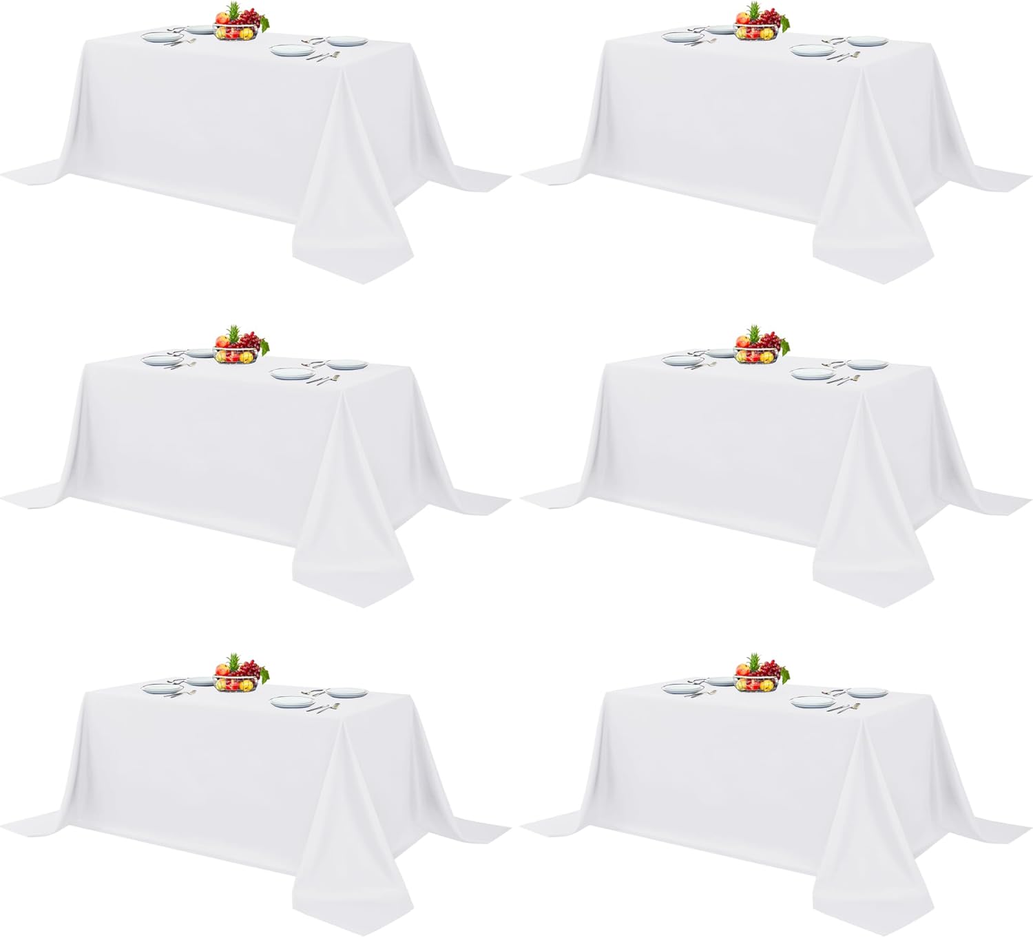 Fitable White Table Clothes for Rectangle Tables, 6 Pack - 90 x 132 Inch - Reusable and Elegant Tablecloths, Polyester Fabric Table Covers for Wedding, Party, Banquet, Formal Events