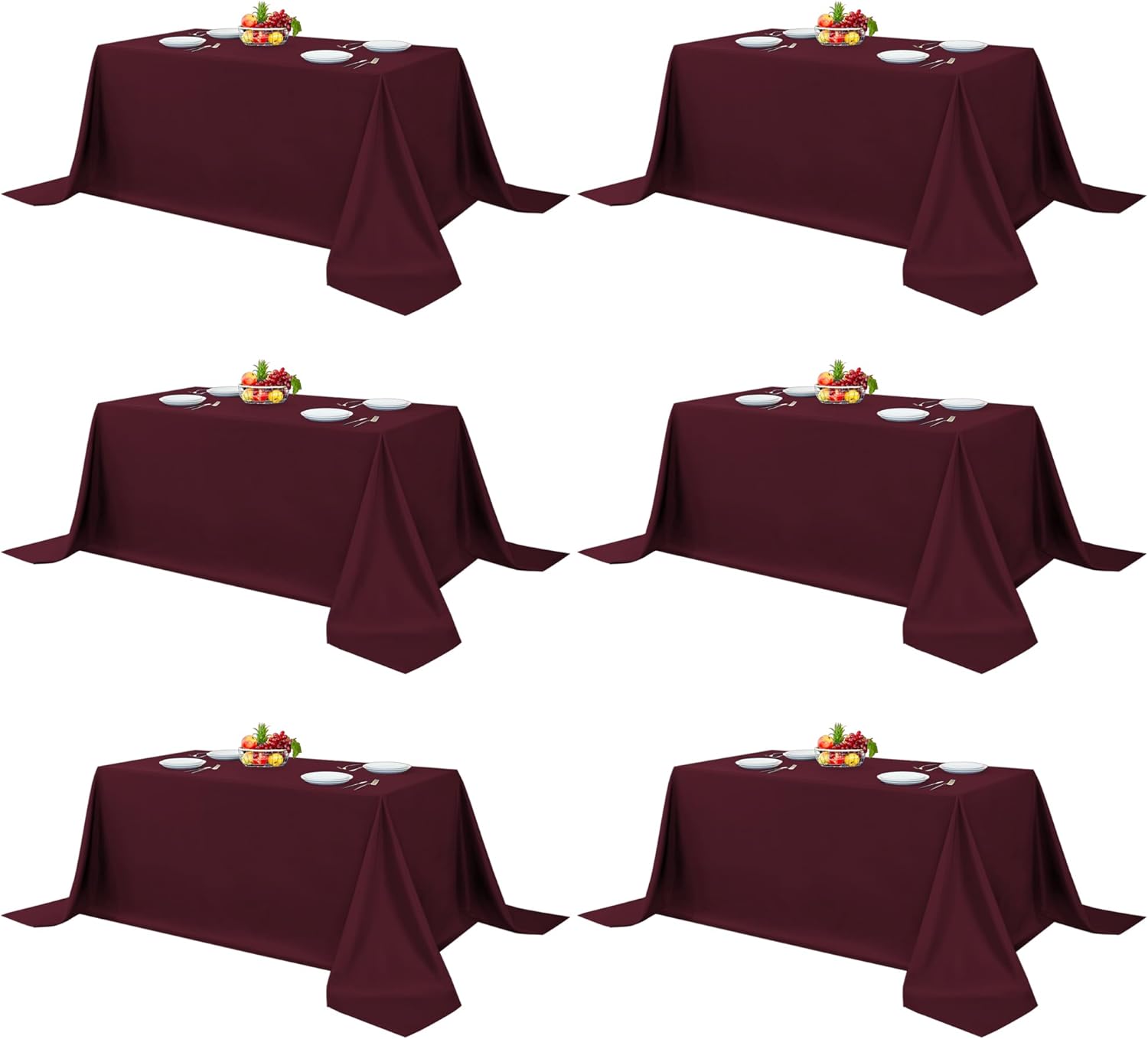 Fitable Burgundy Rectangle Table Clothes, 6 Pack - 90 x 156 Inch - Reusable and Washable Tablecloths, Polyester Fabric Table Covers for Wedding, Party, Banquet, Formal Events