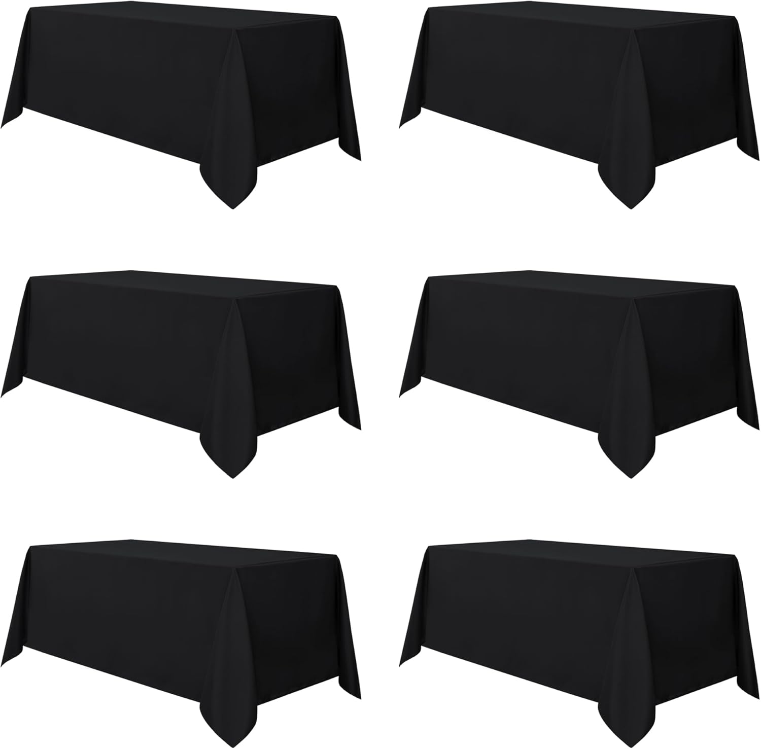 sancua 6 Pack Black Tablecloth 90 x 156 Inch - Rectangle Table Cloth for 8 Feet Tables Stain and Wrinkle Resistant Washable Polyester Table Cover for Dining Wedding Banquet Party Buffet Restaurant