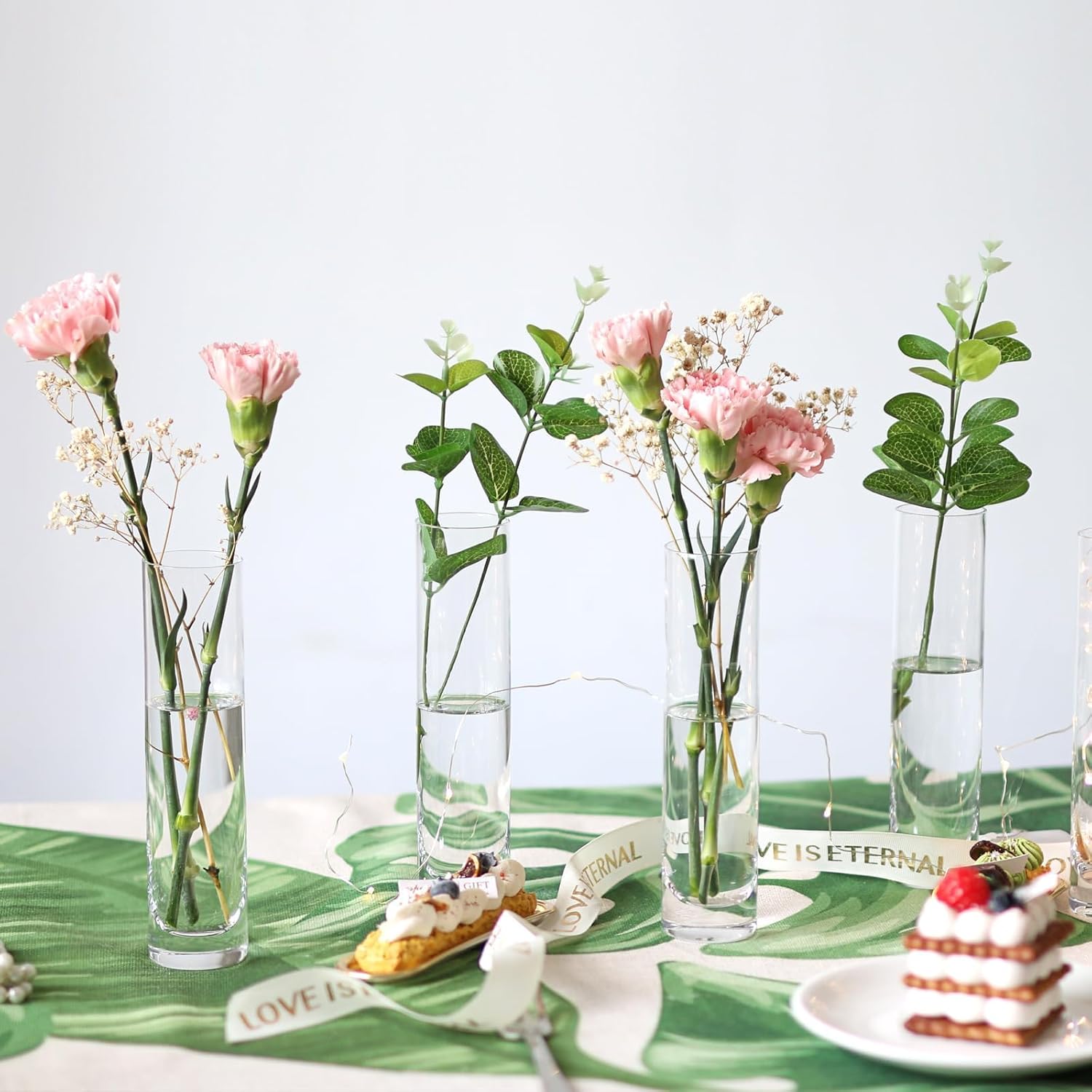 Glass Cylinder Bud Vases for Centerpieces, Set of 12 Clear Small vases,Handmade Slim Flower Vases Wedding Table Decor for Single Rose vases Bulk, Home Aesthetic Desk Decor, Party Decorations,7.5"
