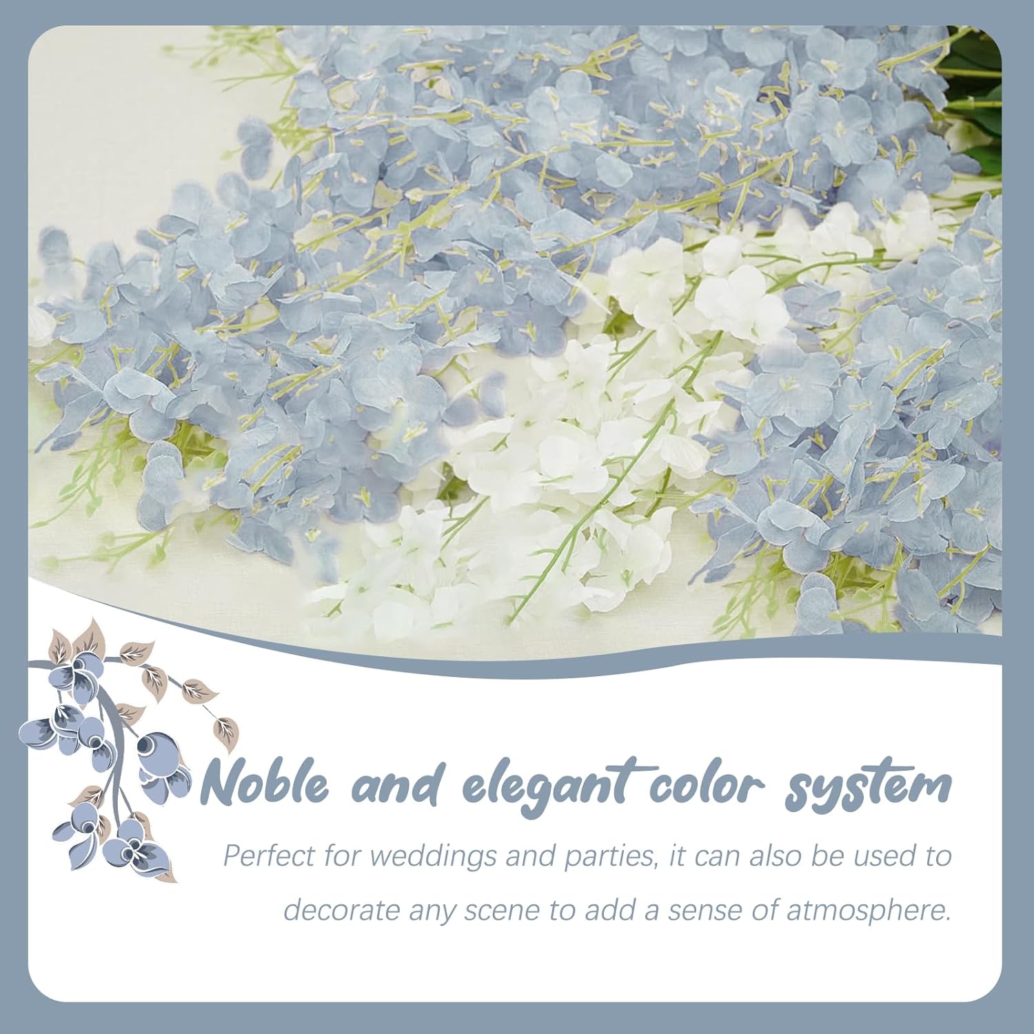 - 【Suitable for A Variety of Scenes】Grey Wisteria Garland flowers have a purely natural pattern design, realistic and natural, suitable for decorating living rooms, bedrooms, study rooms, and windowsill places, so that your living space into the natural atmosphere, become more comfortable. At the same time, they are also suitable for decorating dinner parties, birthday parties, weddings, and other places, to create a warm atmosphere, so that your guests leave a good and unforgettable memory.
