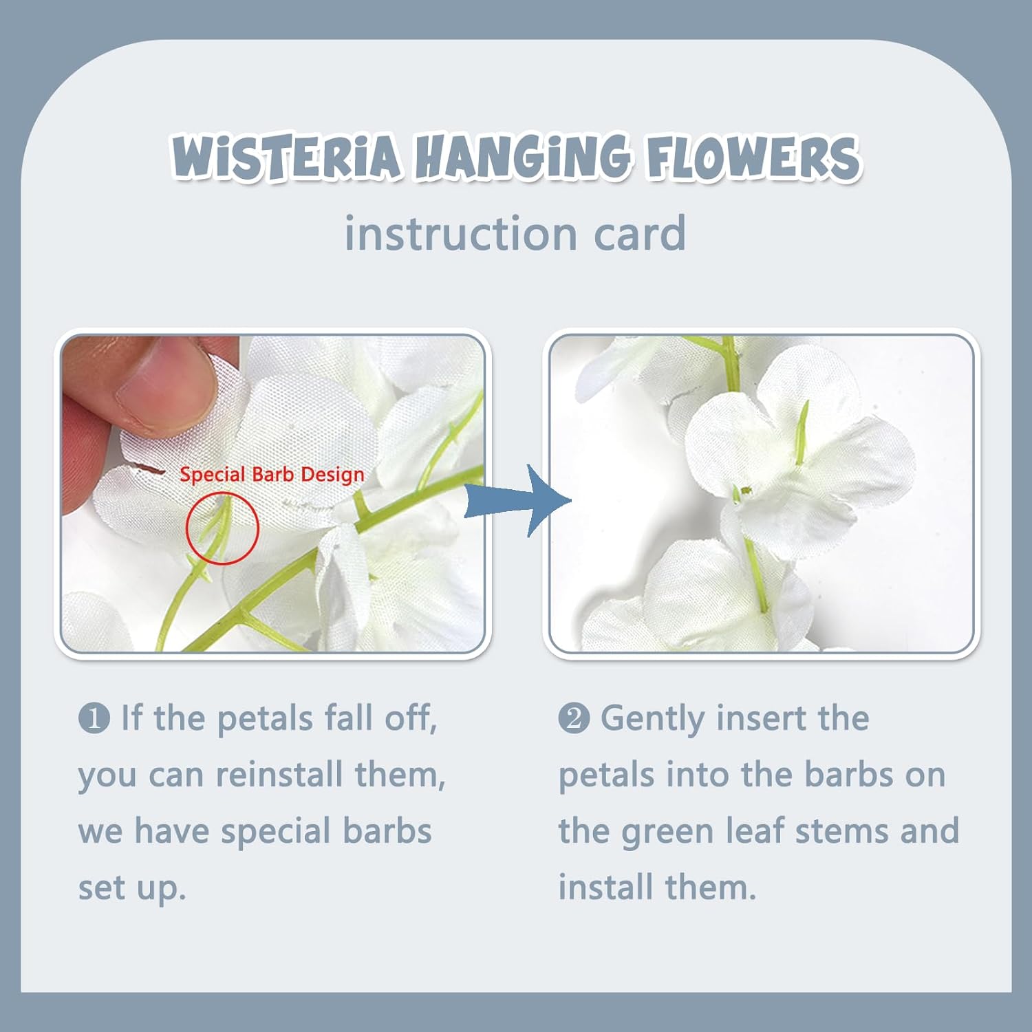 - 【Easy to Install】The grey hanging garland flowers stem are made of durable metal wire and covered with plastic. You can bend the wisteria flower in any shape to satisfy your decoration imagination without damaging it. And the wisteria flower is very easy to install and remove, you can reduce a lot of troubles on installation.