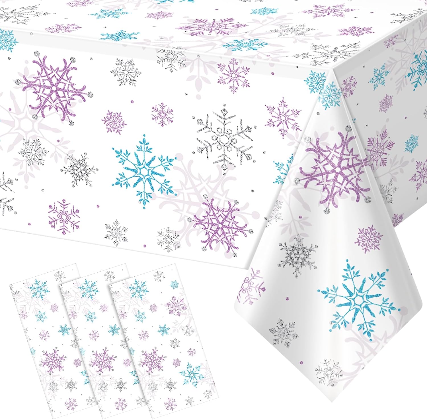 3 Pieces Christmas Snowflake Party Tablecloth Decorations,Plastic Purple and Blue Winter Wonderland Table Cover for Winter Christmas Birthday Holiday Party Decorations and Supplies,54x108 inch