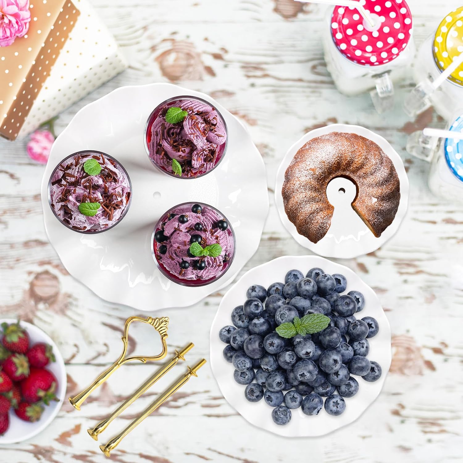 - Food Grade Material: 3 tiered serving stand are made of food safety plastic material, stable and lightweight, perfect for displaying cupcakes, appetizers, cookies, brownies and other party treats.