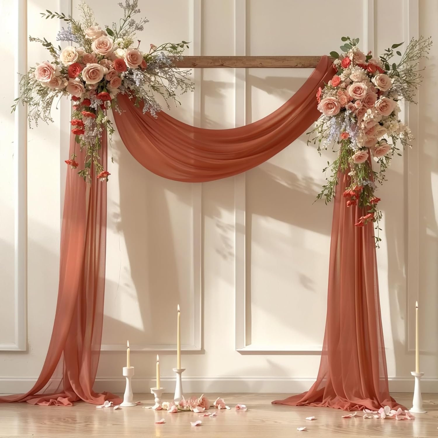 Wedding Arch Draping Fabric, 1 Panel 28" x 19Ft Terracotta Wedding Arch Drapes Sheer Backdrop Curtain for Wedding Ceremony Party Ceiling Decor