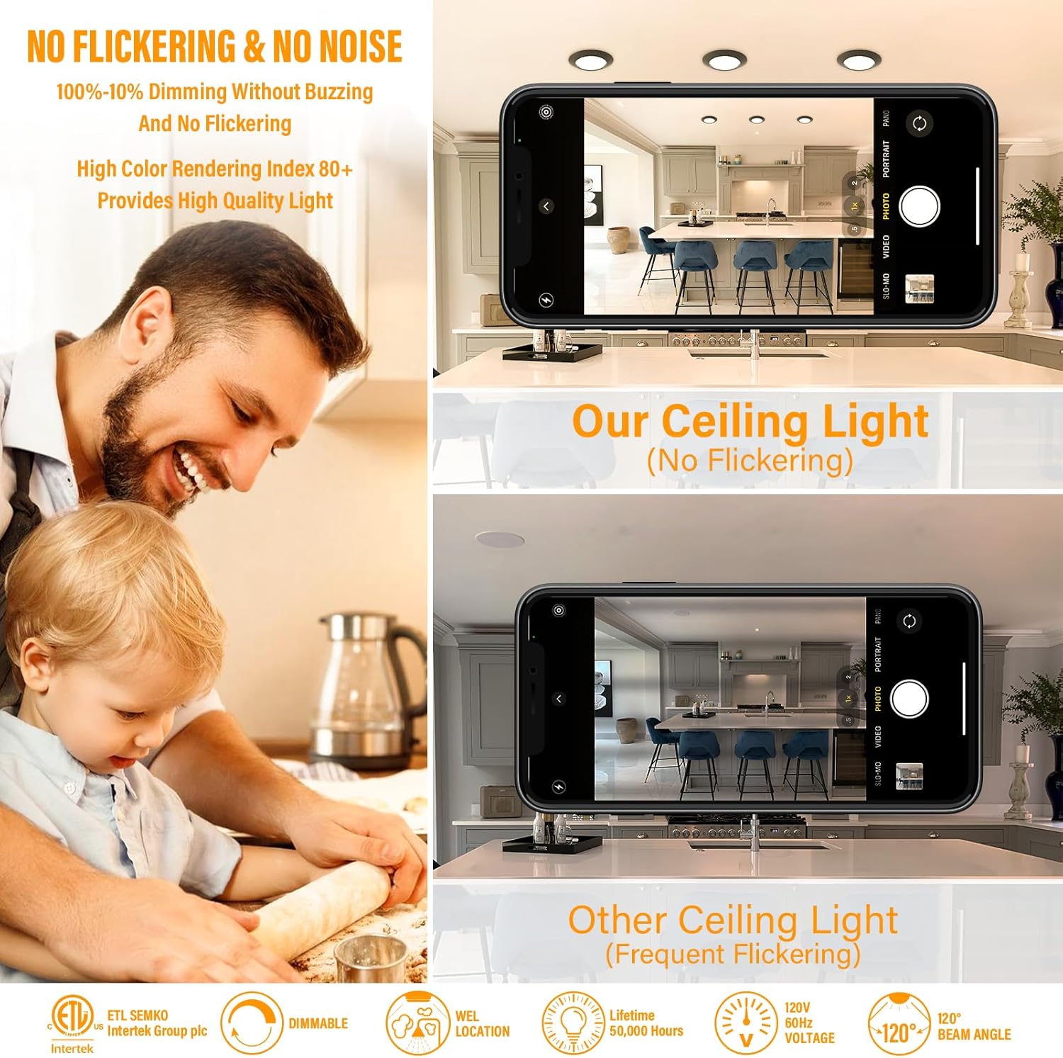 - β EASY INSTALLATION: Low profile and sleek LED ceiling disk/disc light upgrades the existing recessed lights to energy efficient LED with ease and flushes mount onto junction box for new construction site to avoid using recessed can; It provides surface mount light for 3'' and 4'' junction boxes & fire rated boxes.