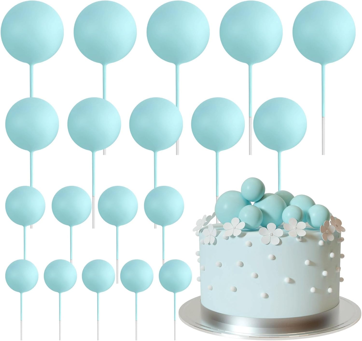 - Package includes: 20 pcs light blue ball cake decorations. The diameter of these ball cake toppers are 0.79 inch/ 2 cm, 0.98 inch/ 2.5 cm, 1.18 inches/ 3 cm, 1.57 inches/ 4 cm, 5 pieces of each size.