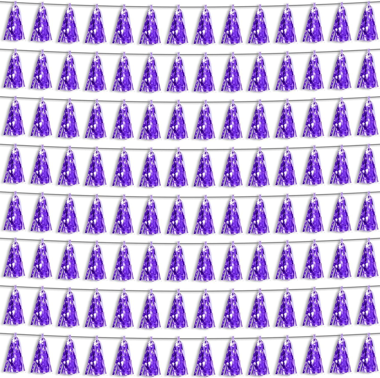 8P Purple Foil Fringe Metallic Tassel Streamers Banner Tassel Garland for Parade Floats, Bachelorette, Wedding, Birthday, Halloween, Christmas, Bridal/Baby Shower Party Decorations