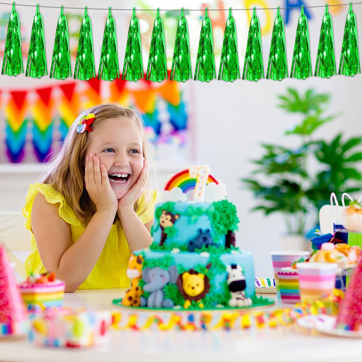 - 【Green Party Supplies Set】: The total length of the green birthday tassels banner is 78.7 feet 120tassels, divided into 8 strips, each 9.8 feet long. Each banner contains 15 tassels, and each tassel measures 14 inches, for birthday decorations many occasions, and so on