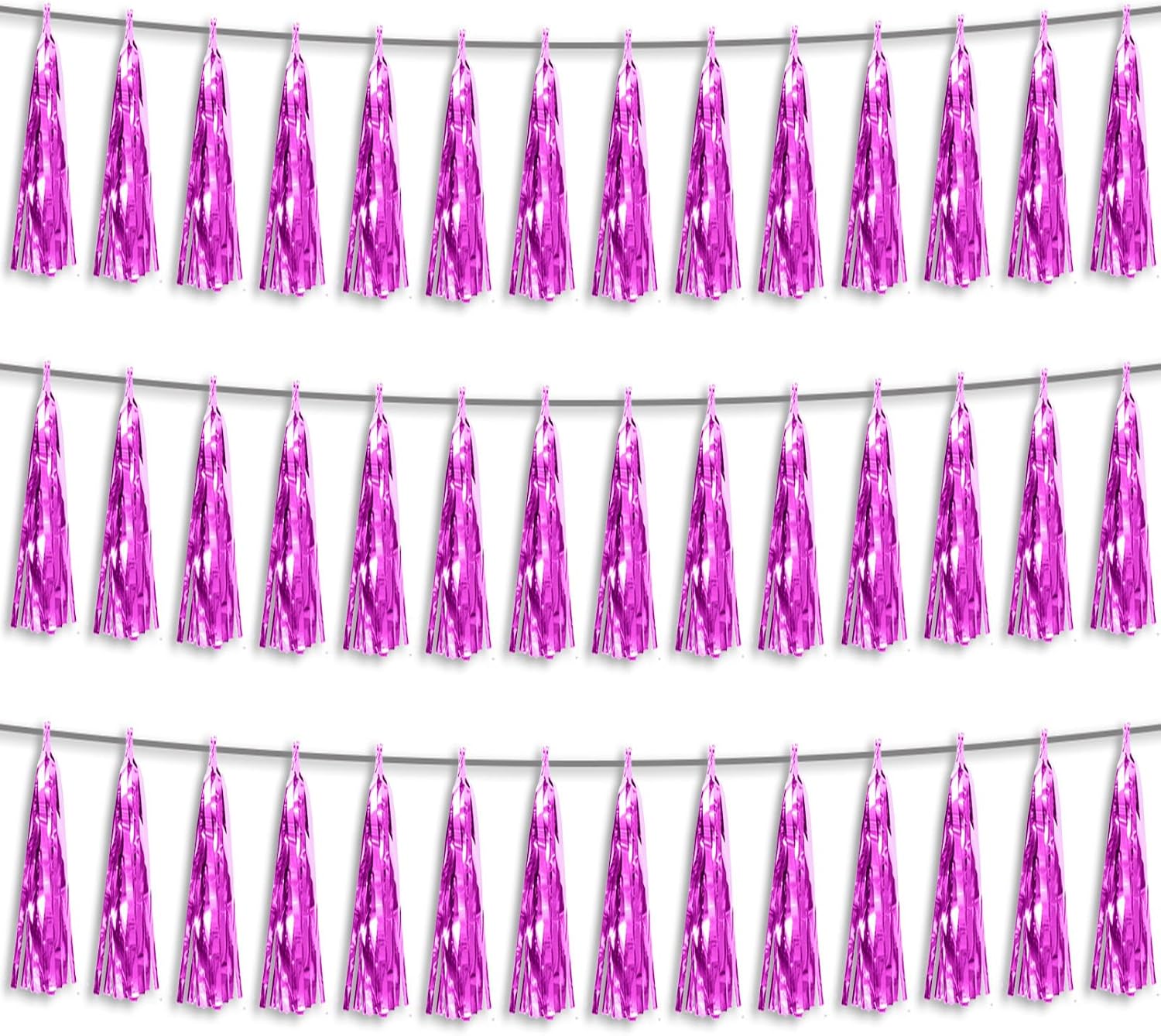 3P Fuchsia Foil Fringe Metallic Tassel Streamers Banner Tassel Garland for Parade Floats, Bachelorette, Wedding, Birthday, Halloween, Christmas, Bridal/Baby Shower Party Decorations