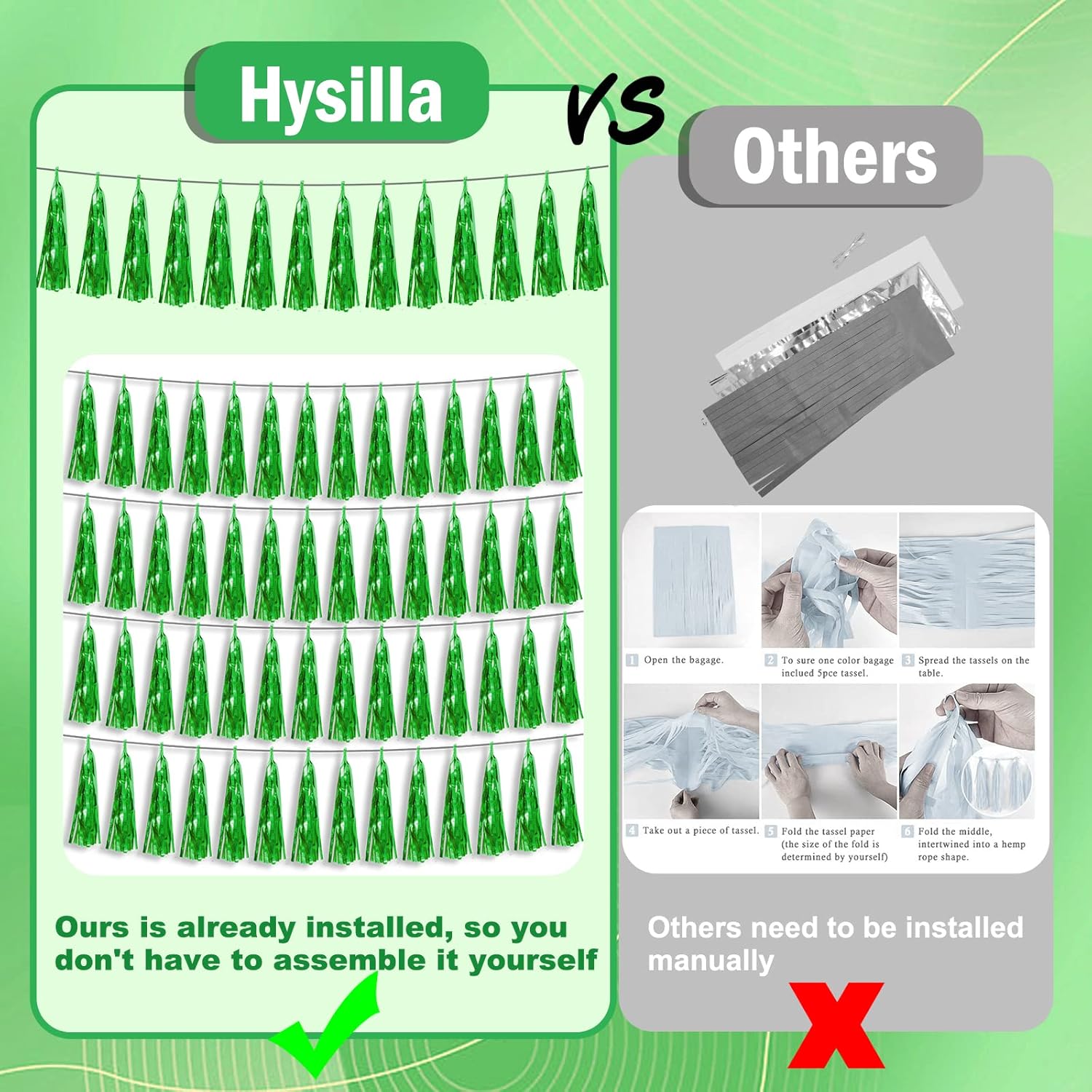 - 【Green Party Supplies Set】: The total length of the green birthday tassels banner is 29.5 feet 45tassels, divided into 3 strips, each 9.8 feet long. Each banner contains 15 tassels, and each tassel measures 14 inches, for birthday decorations many occasions, and so on