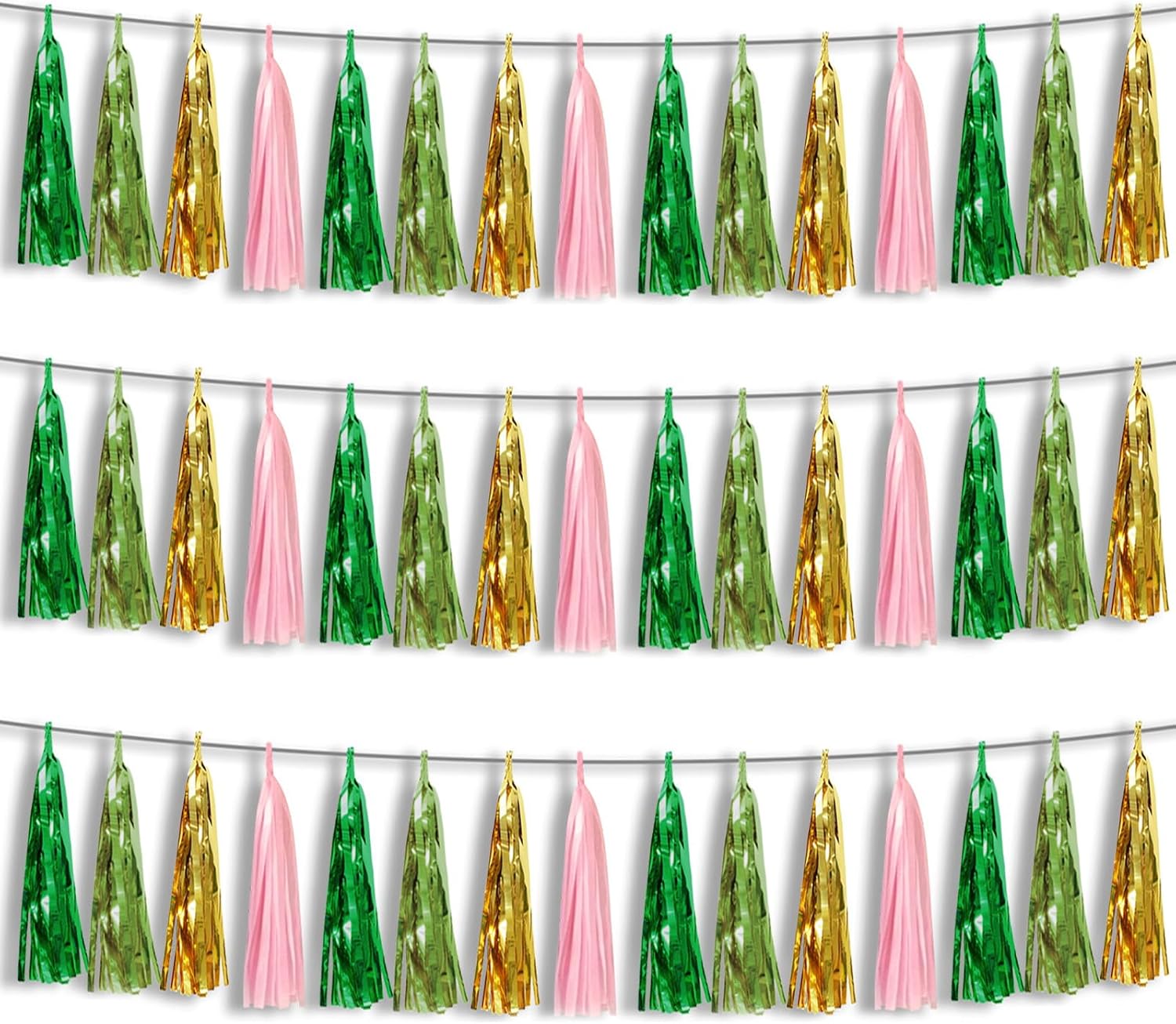 - 【Perfect Party Decoration】The sage green pink gold tinsel garlands are designed in a metallic Fringe, bright, and beautiful, at the same time, they shine in the sun, and these gorgeous tassel garlands create a wonderful backdrop or centerpiece for your party space. and bring you, your family, and your friend's good Visual effects. your party many emotional and touching moments where a lot of pictures will be taken and everybody will have a wonderful time together.