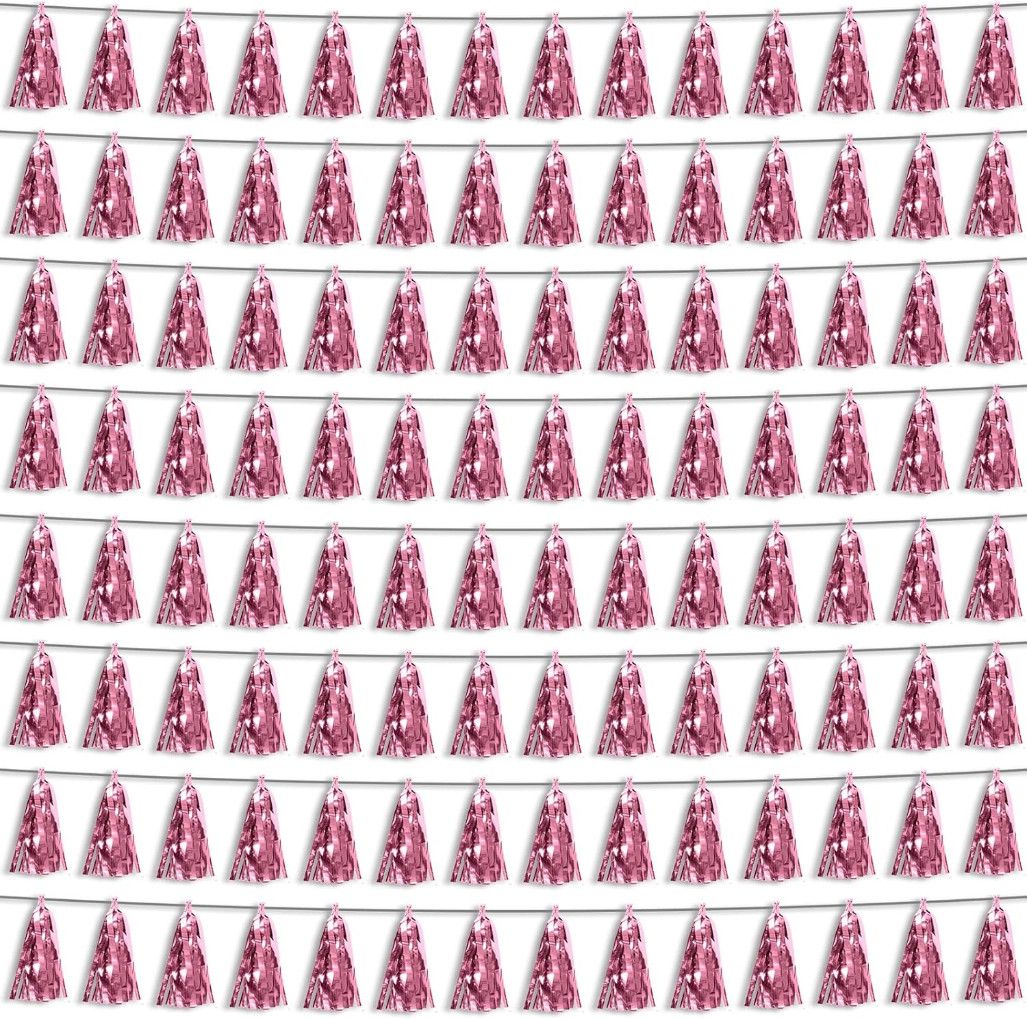 - 【Light Pink Party Supplies Set】: The total length of the light pink birthday tassels banner is 78.7 feet 120tassels, divided into 8 strips, each 9.8 feet long. Each banner contains 15 tassels, and each tassel measures 14 inches, for birthday decorations many occasions, and so on
