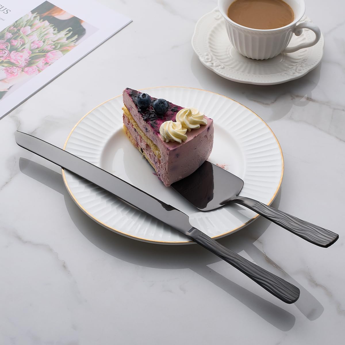 Black Cake Cutter Set, Stainless Steel Cake Cutting Utensils Include 13-inch Cake Knife and 9.3-inch Cake Server suitable for Weddings, Birthdays, and Anniversaries