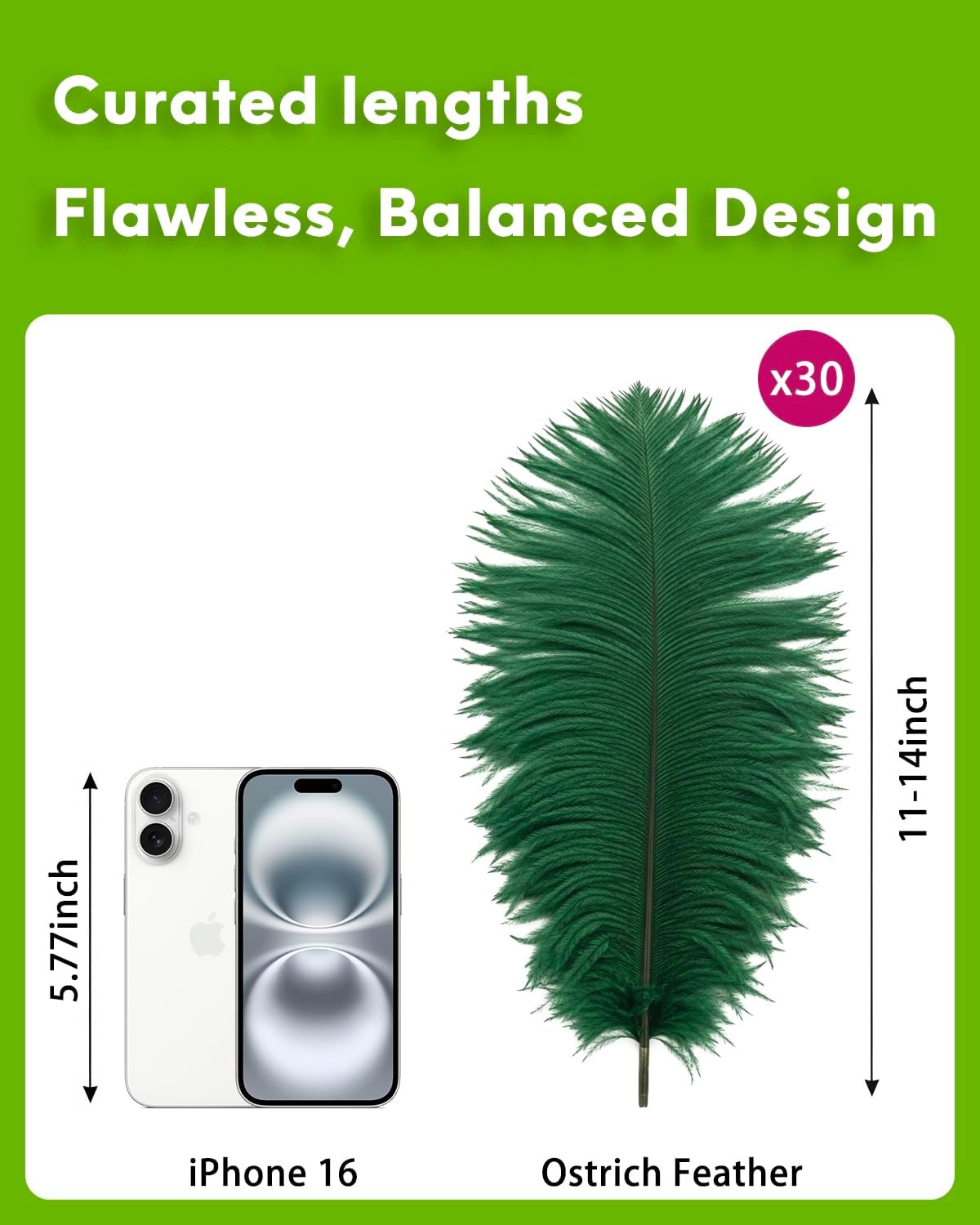 NEWONG 30pcs Dark Green Ostrich Feathers Natural Bulk 11-14inch(28-35cm) Vase Craft Wedding Home Party Centerpieces Christmas Day Decoration