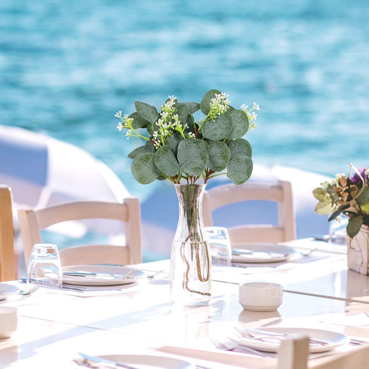 - ☘These realistic artificial eucalyptus leaf stems will be the perfect complement for wedding bouquets, wedding center decorations, eucalyptus wreaths, wedding floral decorations, floral decorations, room decorations or display on fireplaces, dining tables, coffee tables, bedside tables, shelves and office tables. They are a year-round decorative artificial greenery that can illuminate your surroundings