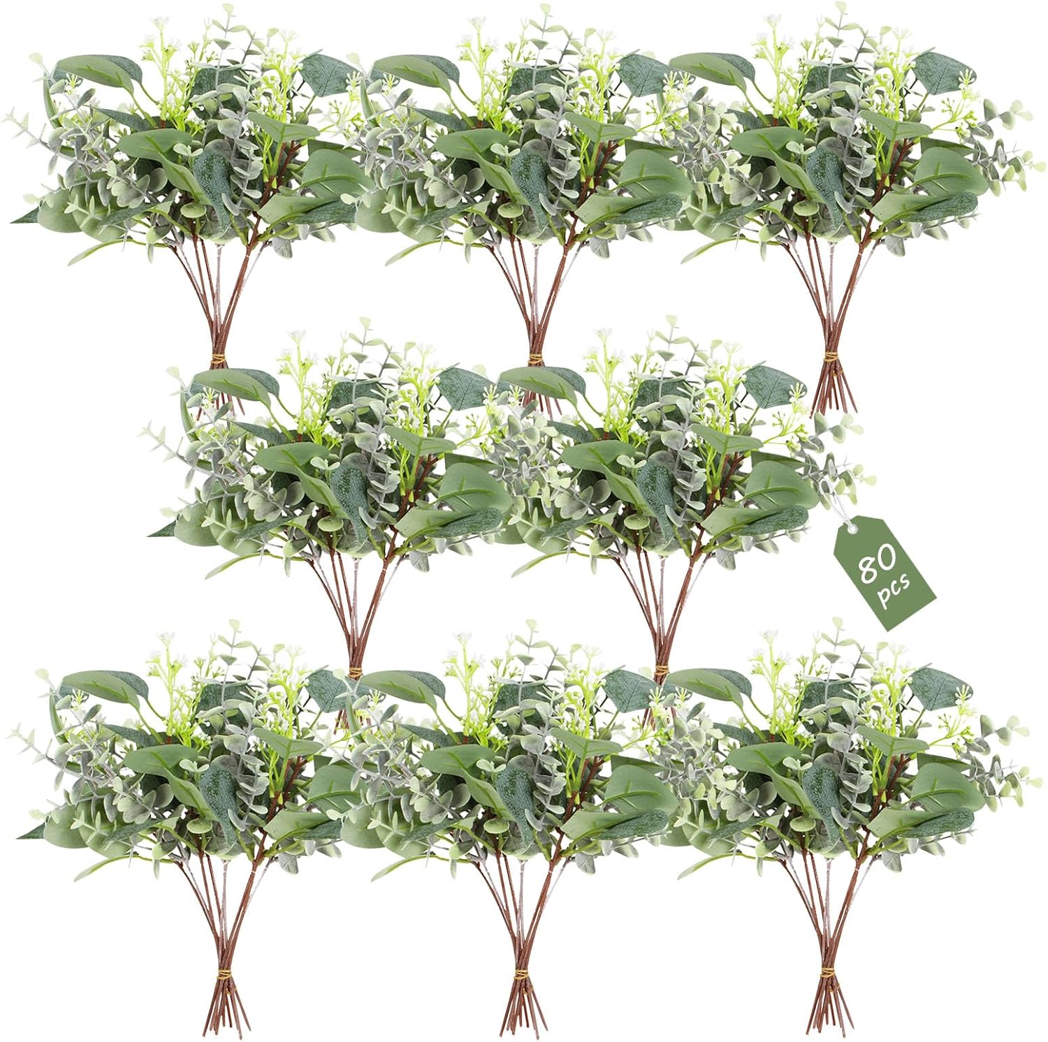 80 Pcs Mixed Eucalyptus Leaves Stems Bulk Artificial Silver Dollar Leaves for Vase Bouquets Baby Eucalyptus Leaves for Family Wedding Center Flower Arrangement
