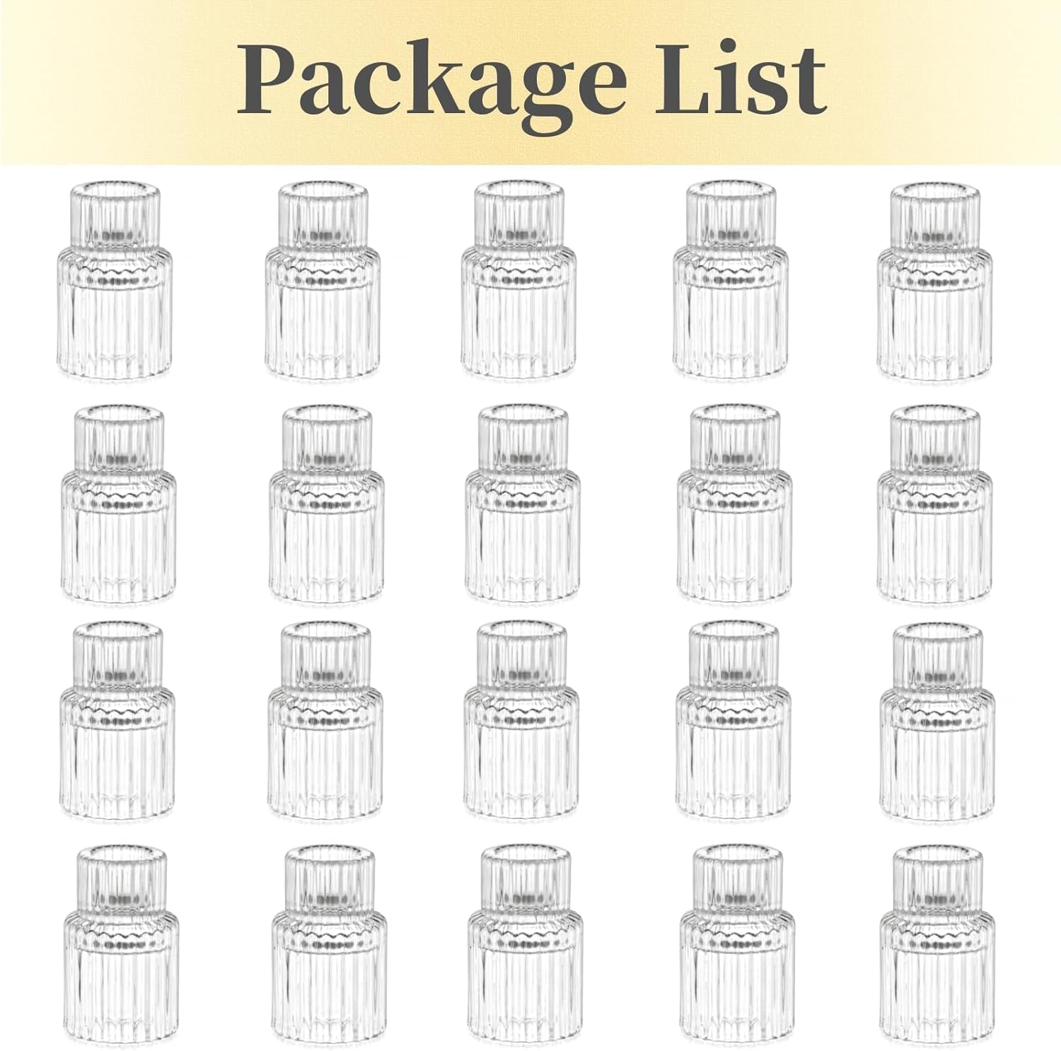 - 【Multiple Occasions Use】The candlestick holders bulk comes with 20 pcs clear ribbed glass candle holder. It's suitable for holiday celebration like Valentine's day, Christmas, Thanksgiving, or special occasions like weddings, parties, engagements. Its simple & dainty design will make a great addition to any decor.