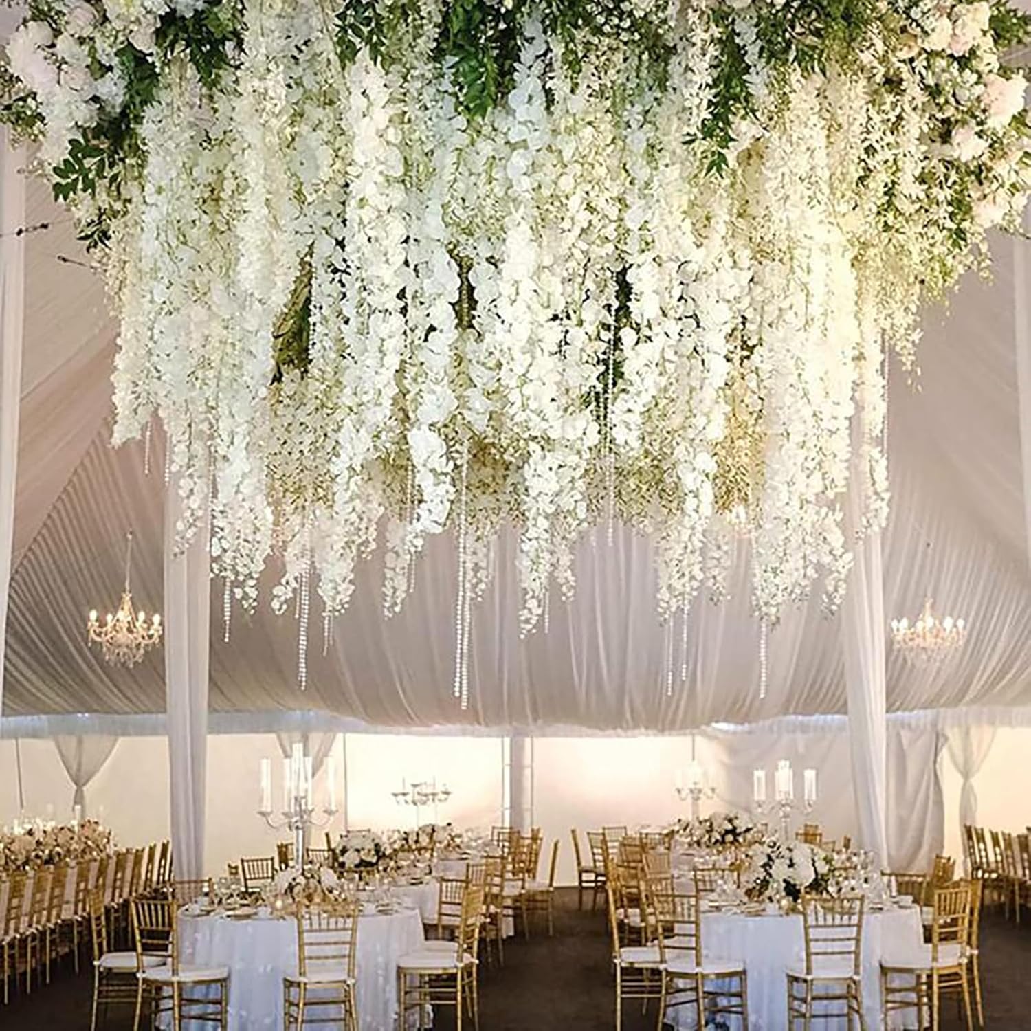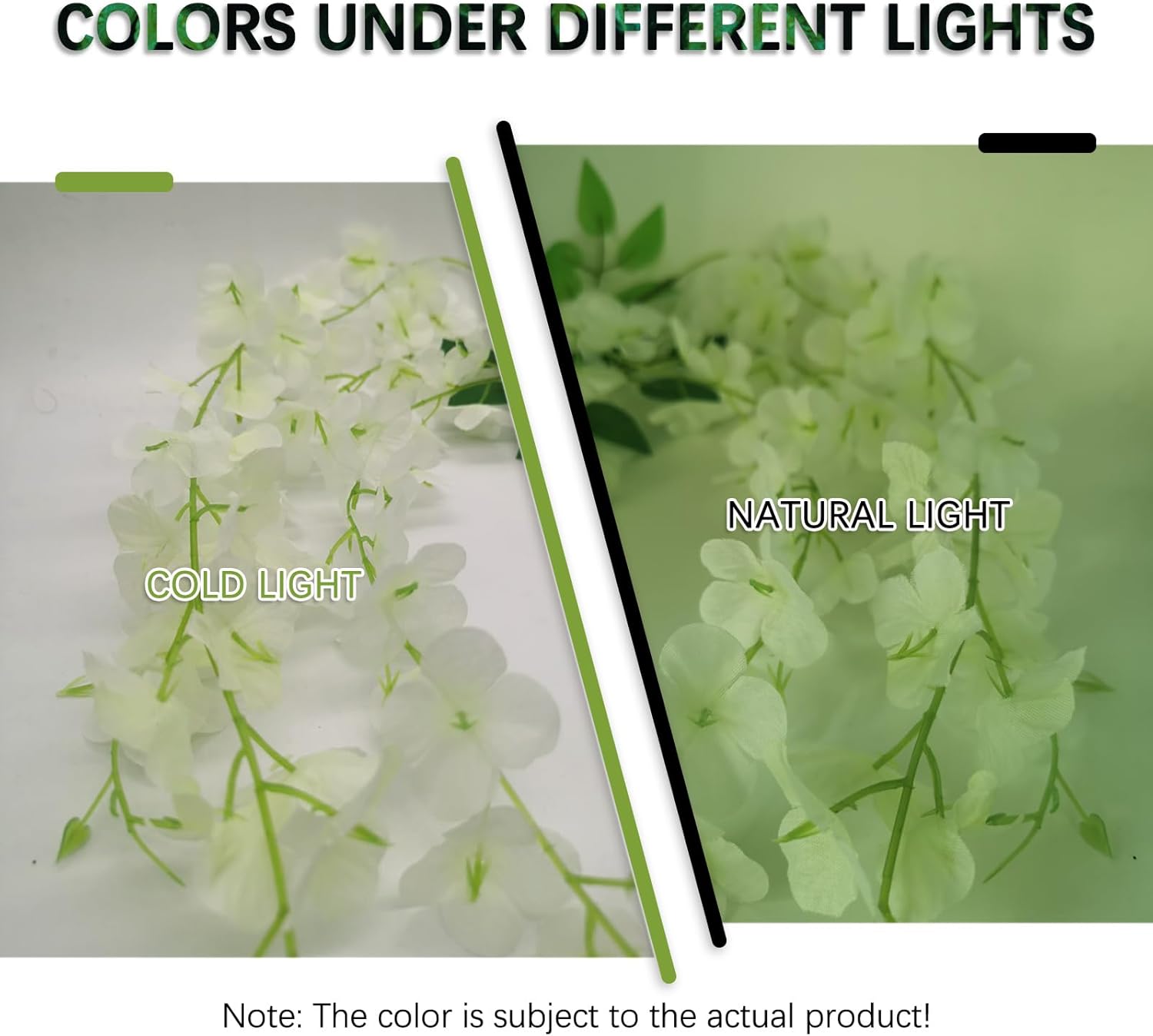 - 【Package Included】12 pieces of silk white green wisteria hanging flowers, each length 45.27 inches. Every artificial wisteria garland has 3 branches and 6 leaves, the wisteria flower petal length is 23.62 inches. (Note: There may be some color differences in different lights)