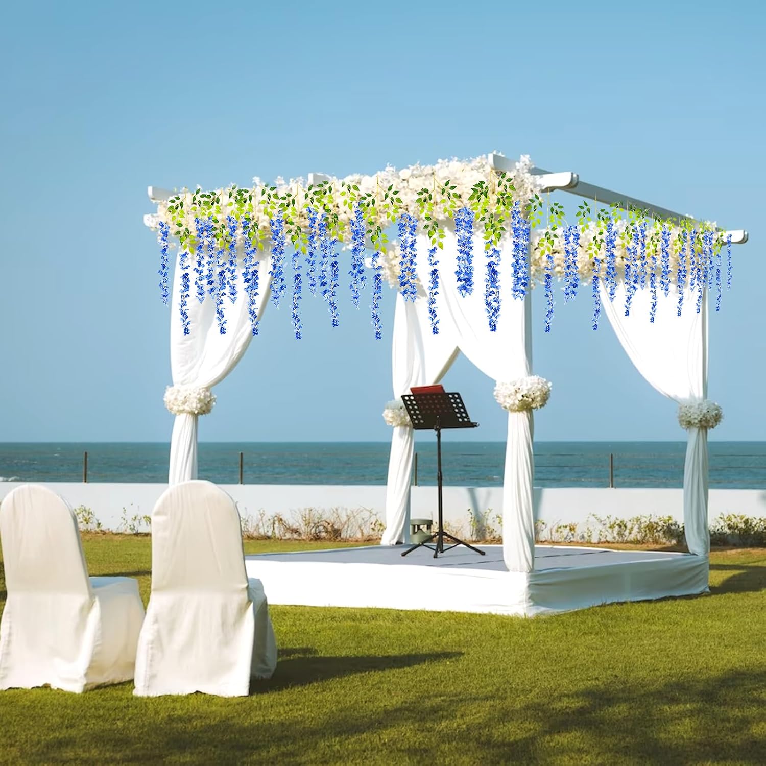 24 Pack Royal Blue Wisteria Hanging Flowers Garland, 3.77 Feet Artificial Flower Vines, Fake Wisteria, Artificial Vines Hanging Garland for Backdrop Outdoor Yard Garden Decor