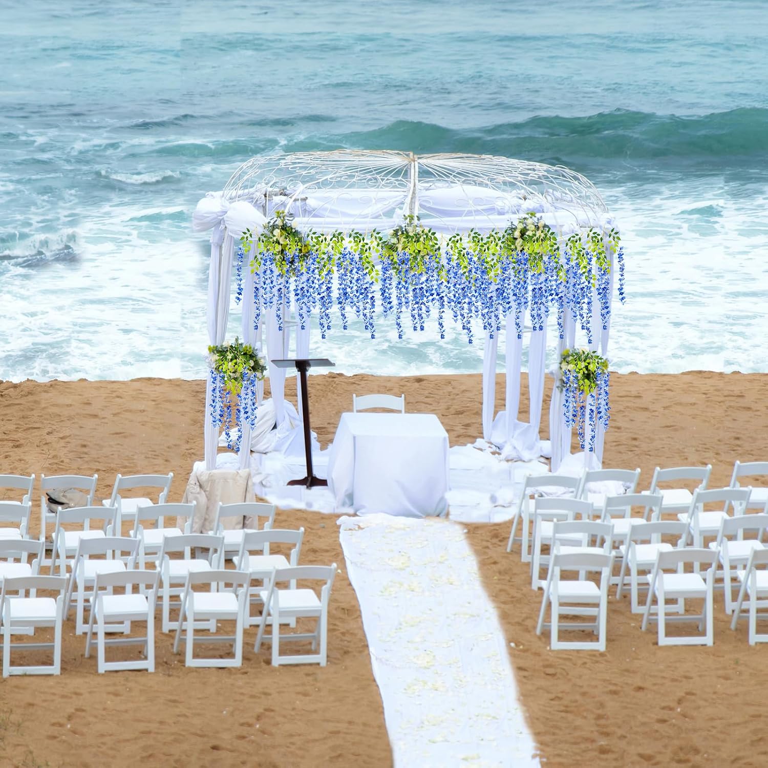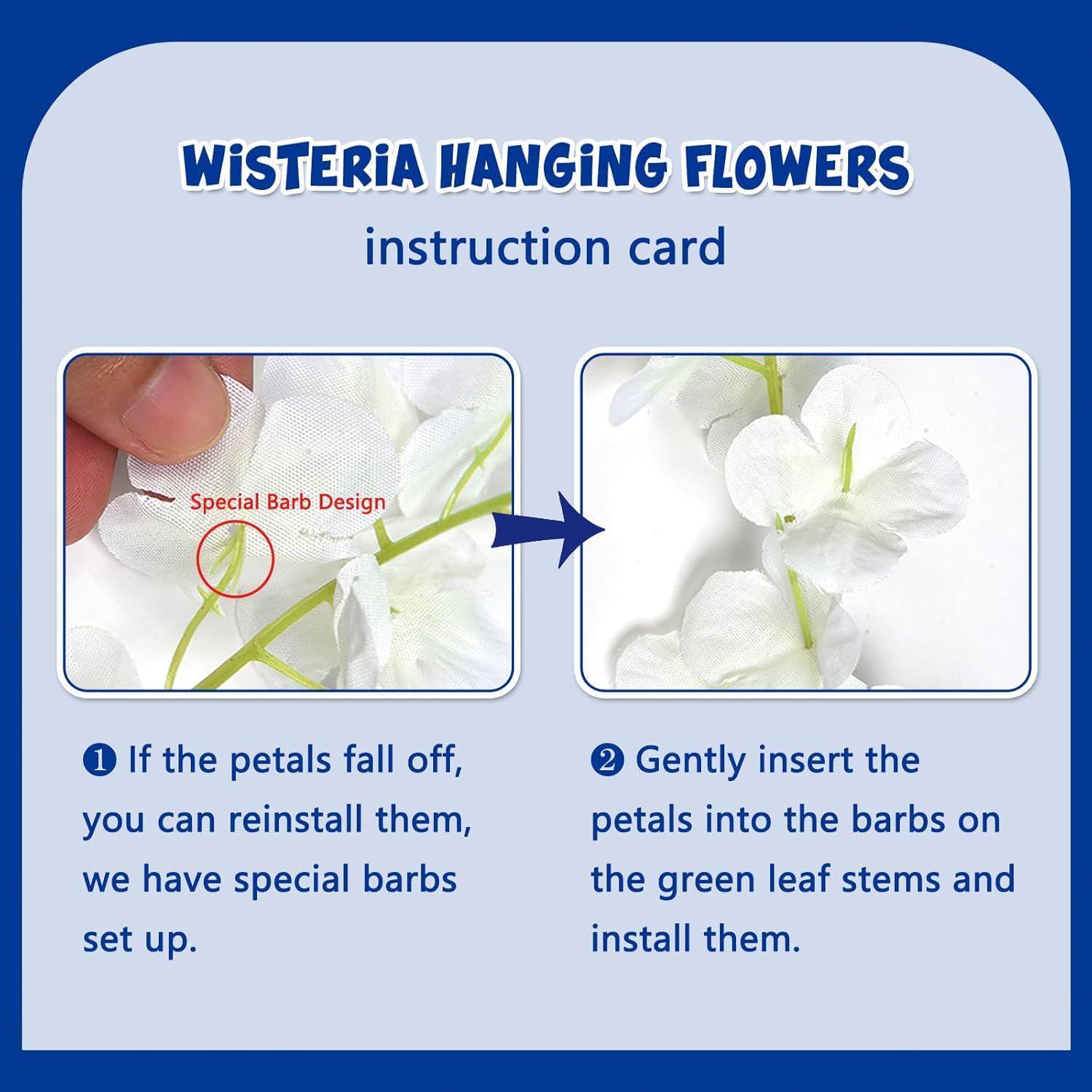 - 【Easy to Install】The royal blue hanging garland flowers stem are made of durable metal wire and covered with plastic. You can bend the wisteria flower in any shape to satisfy your decoration imagination without damaging it. And the wisteria flower is very easy to install and remove, you can reduce a lot of troubles on installation.