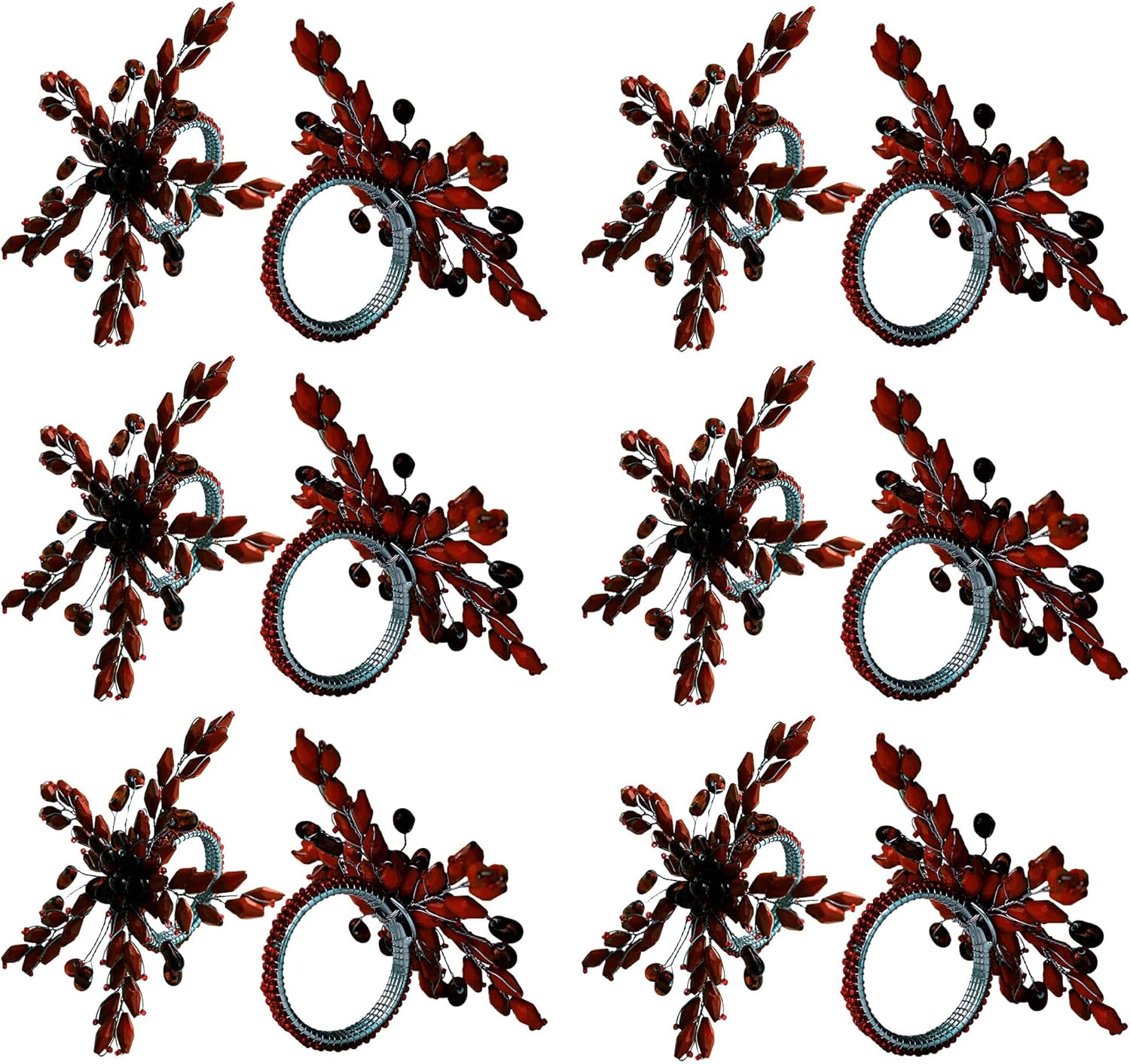 Napkin Rings Set of 12 for Dining Table Decoration Parties Everyday Metal Napkin Holder Leaf Wine (Pack of 12)