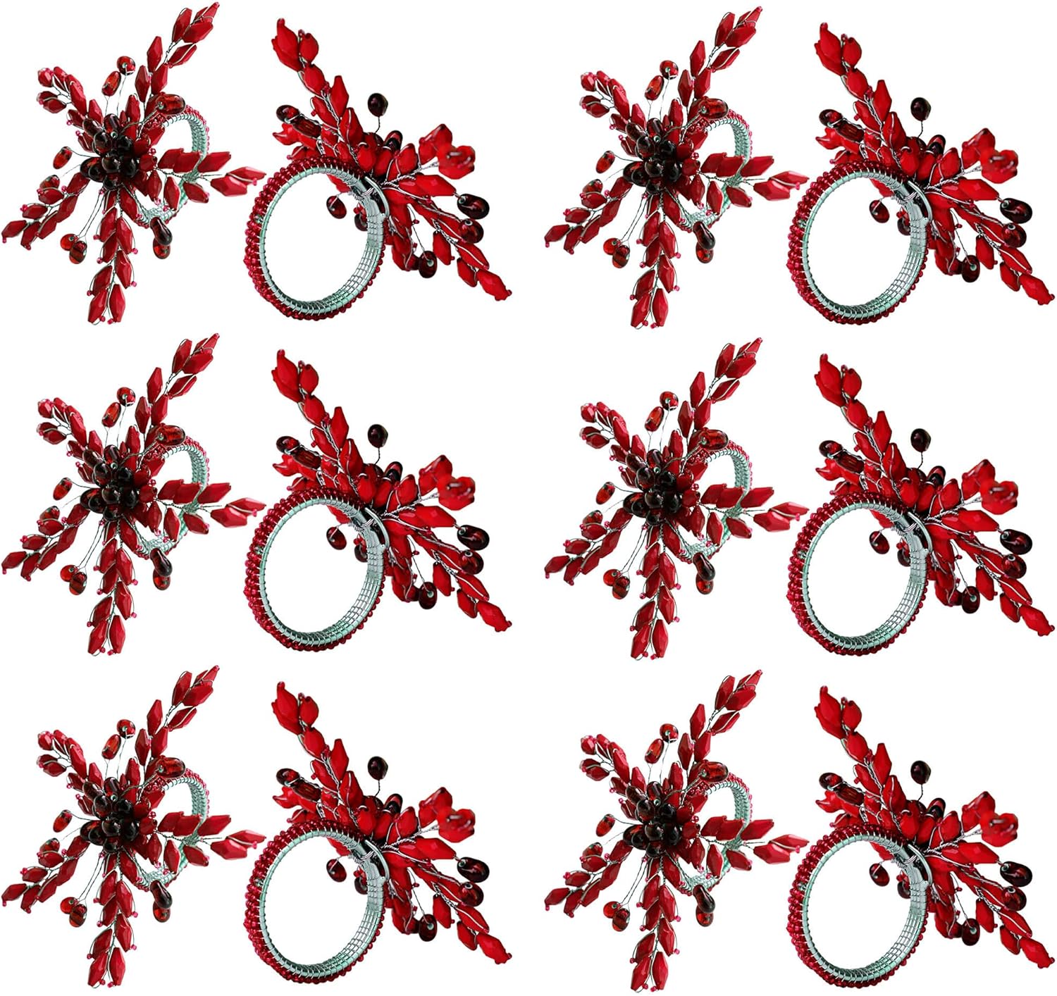 Napkin Rings Set of 12 for Dining Table Decoration Parties Everyday Metal Napkin Holder Leaf Red (Pack of 12)
