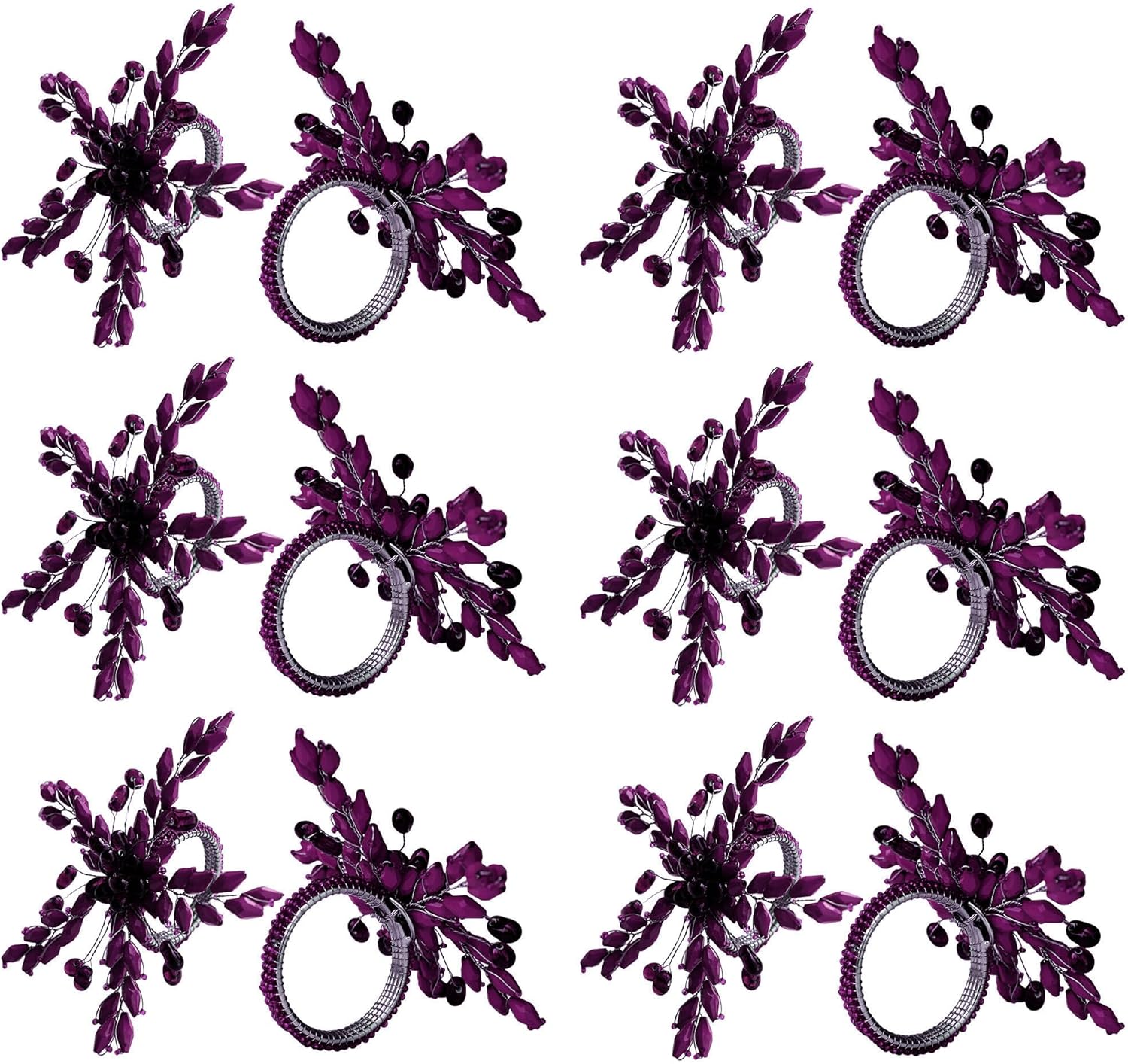 Napkin Rings Set of 12 for Dining Table Decoration Parties Everyday Metal Napkin Holder Leaf Purple (Pack of 12)