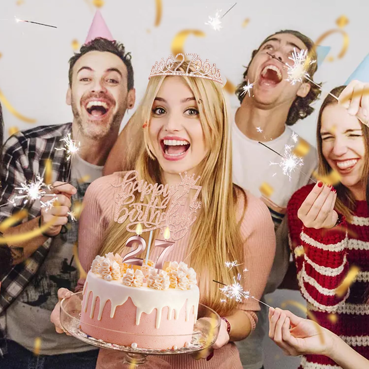 - 【27 Birthday Decorations for Women】: Birthday Sash for Women *1pc, Women Birthday Crown*1pc, Happy 27th Birthday Cake Topper *1pc, Numeral 27 Candles *1set. All be packed in a beautiful gift box ready for good presentation in 27th Birthday