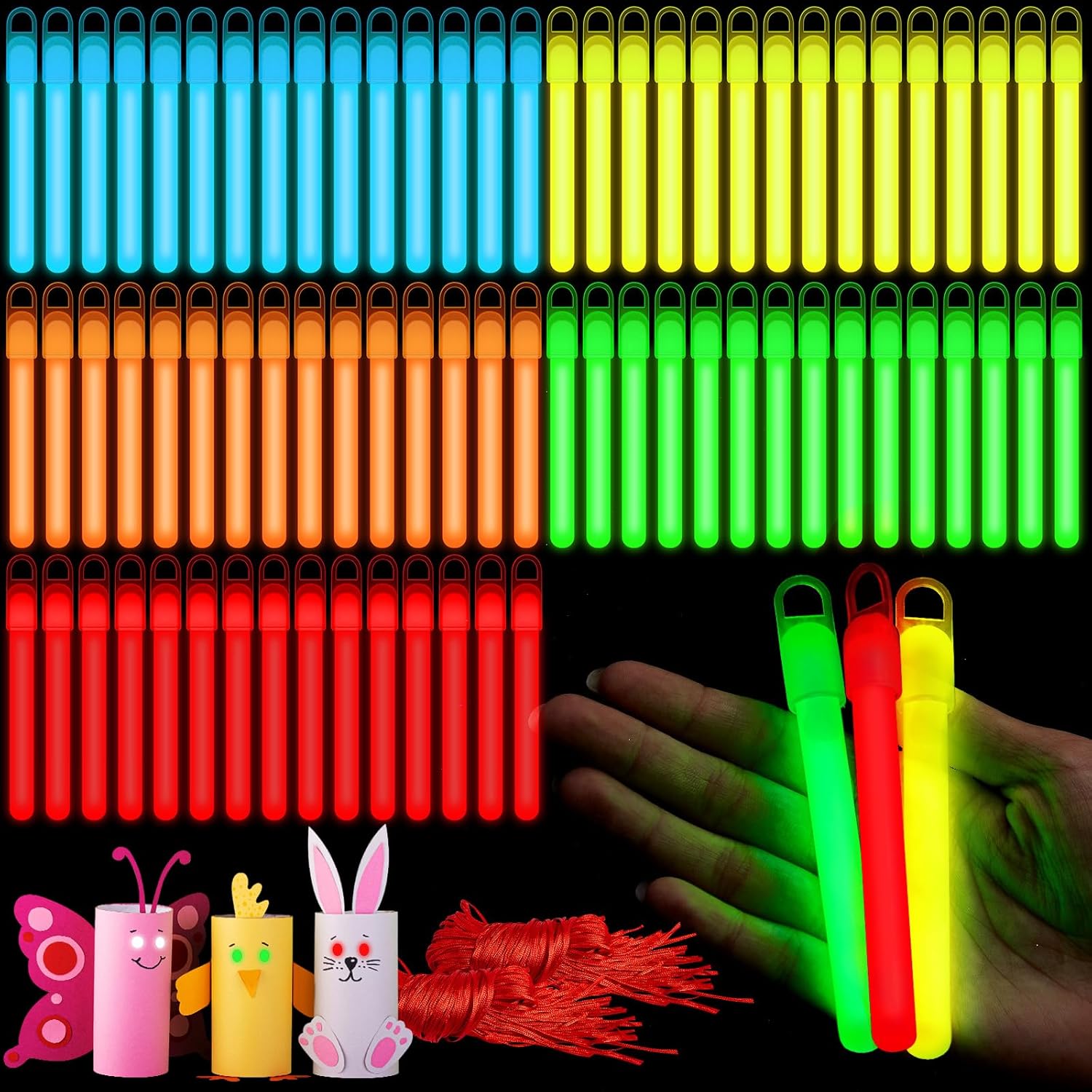 • Safe to Use: the bright glow sticks are packaged independently in bulk; The bright glow sticks are made of industrial structure and quality materials; Our glow sticks are reliable and can last 12 hours of light