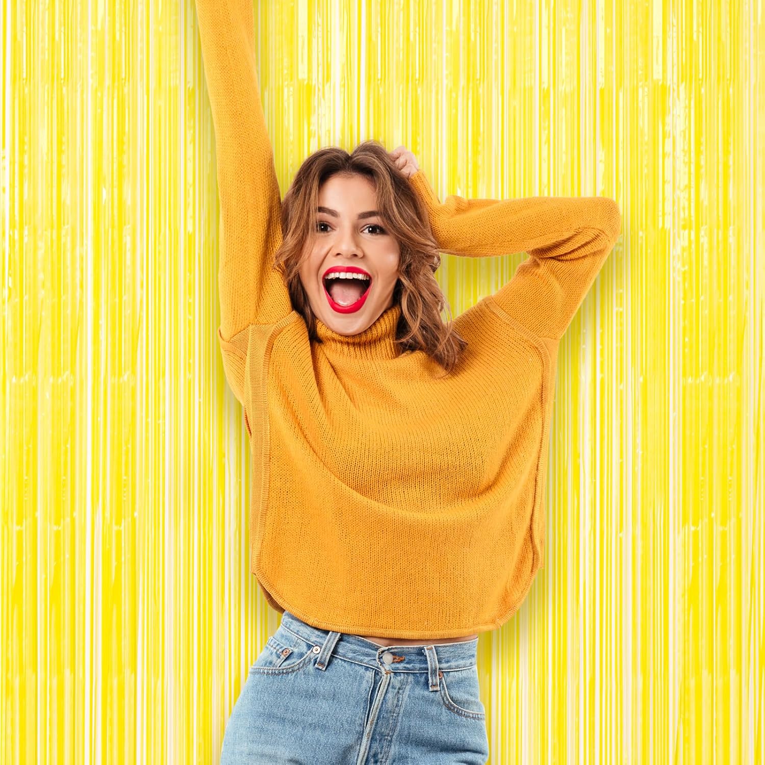 - Premium Material: This Pastel Yellow foil curtain backdrop is made of stable tinsel, non-fading, stay shiny and reusable. Unfold it and then enjoy your glittering party