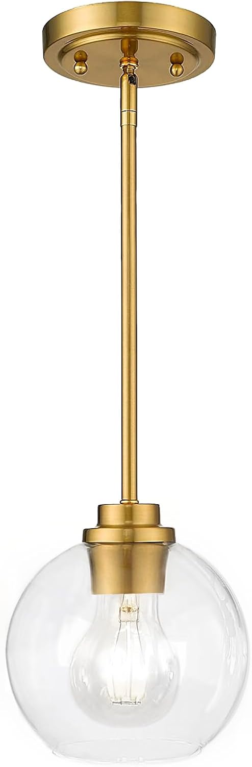 - 【EASY INSTALLATION】 The gold pendant lights feature an open-bottom glass globe for simple bulb changes and come with all necessary mounting hardware. The 5" diameter canopy ensures secure installation on flat or sloped ceilings