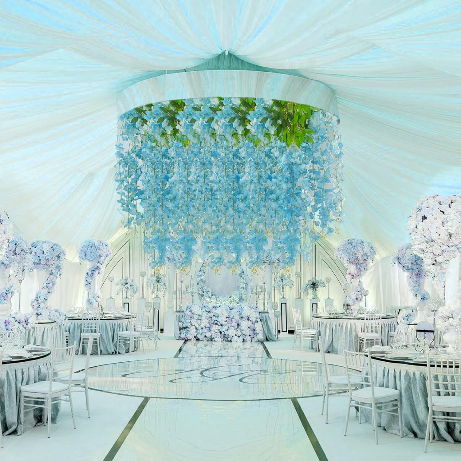 - 【Cycle Used】The lake blue artificial wisteria garland is made of silk, the stem is made of metal wire and plastic, and it can be easily bent and recovered, so you can use it many times, very environmentally and cost-effective.