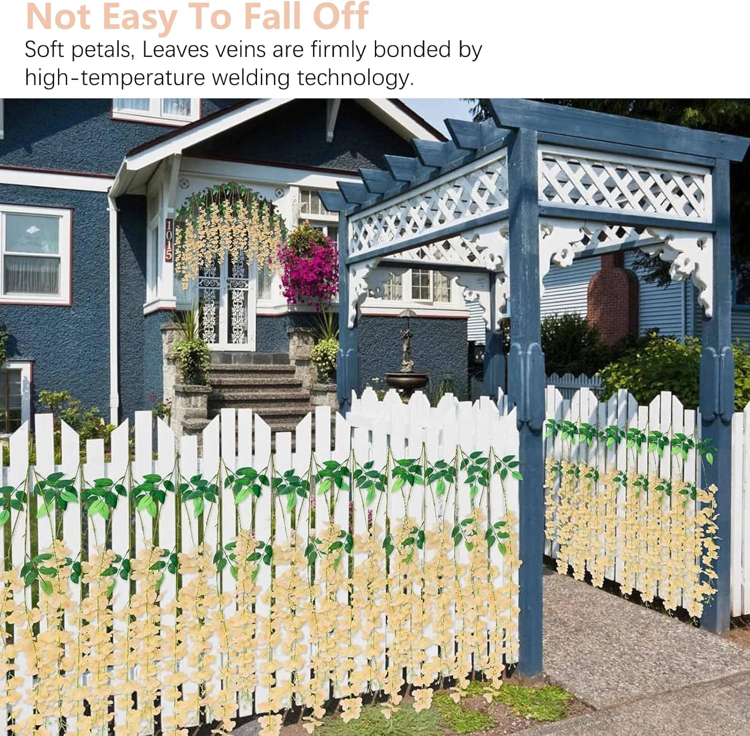 - 【Cycle Used】The champagne artificial wisteria garland is made of silk, the stem is made of metal wire and plastic, and it can be easily bent and recovered, so you can use it many times, very environmentally and cost-effective.