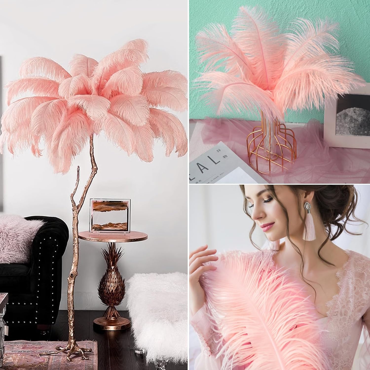 NEWONG 30pcs Rouge Pink Ostrich Feathers Natural Bulk 8-10in(20-25cm) Vase Craft Wedding Home Party Centerpieces Christmas Day Decoration