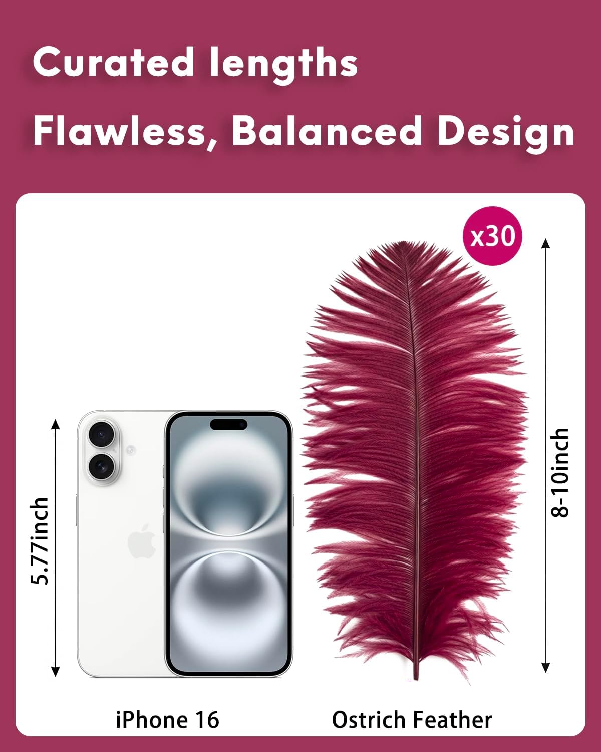 NEWONG 30pcs Wine red Ostrich Feathers Natural Bulk 8-10in(20-25cm) Vase Craft Wedding Home Party Centerpieces Christmas Day Decoration