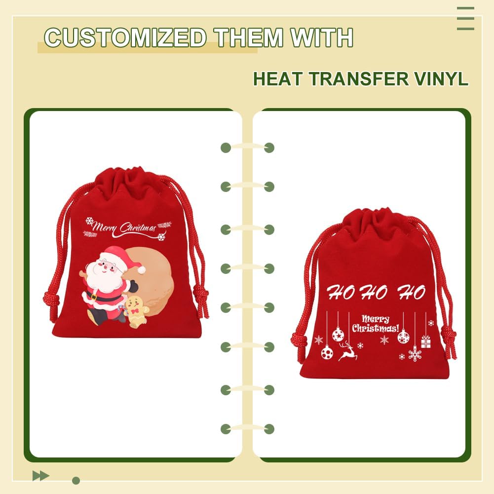 - Customize Gift Bags - You can customize the velvet drawstring bags with heat transfer vinyl, using them for client gift bags. Iron your brand logo on to help foster business recognition