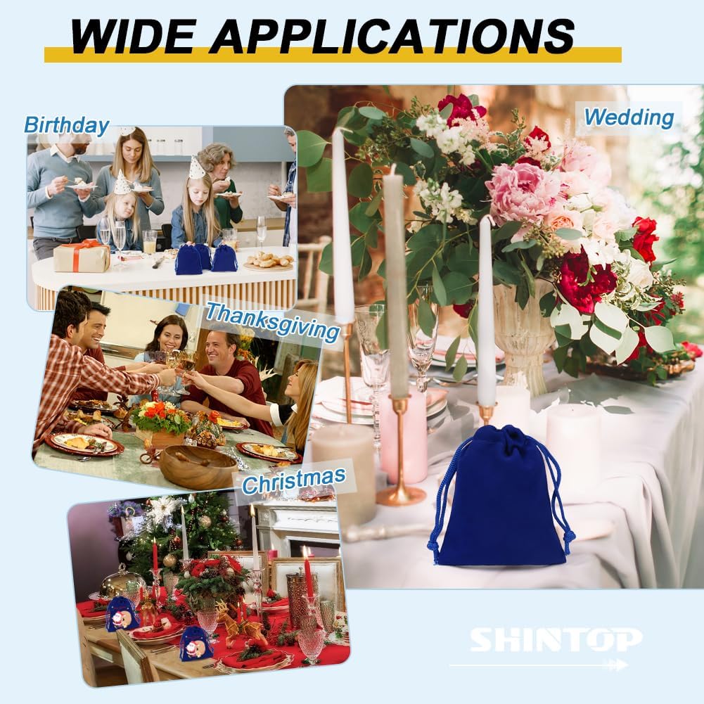 Shintop 50pcs velvet Jewelry bags, 3x4inch Blue Little Gift pouches Drawstring Jewelry Packaging for Dice Small Business Party Favor