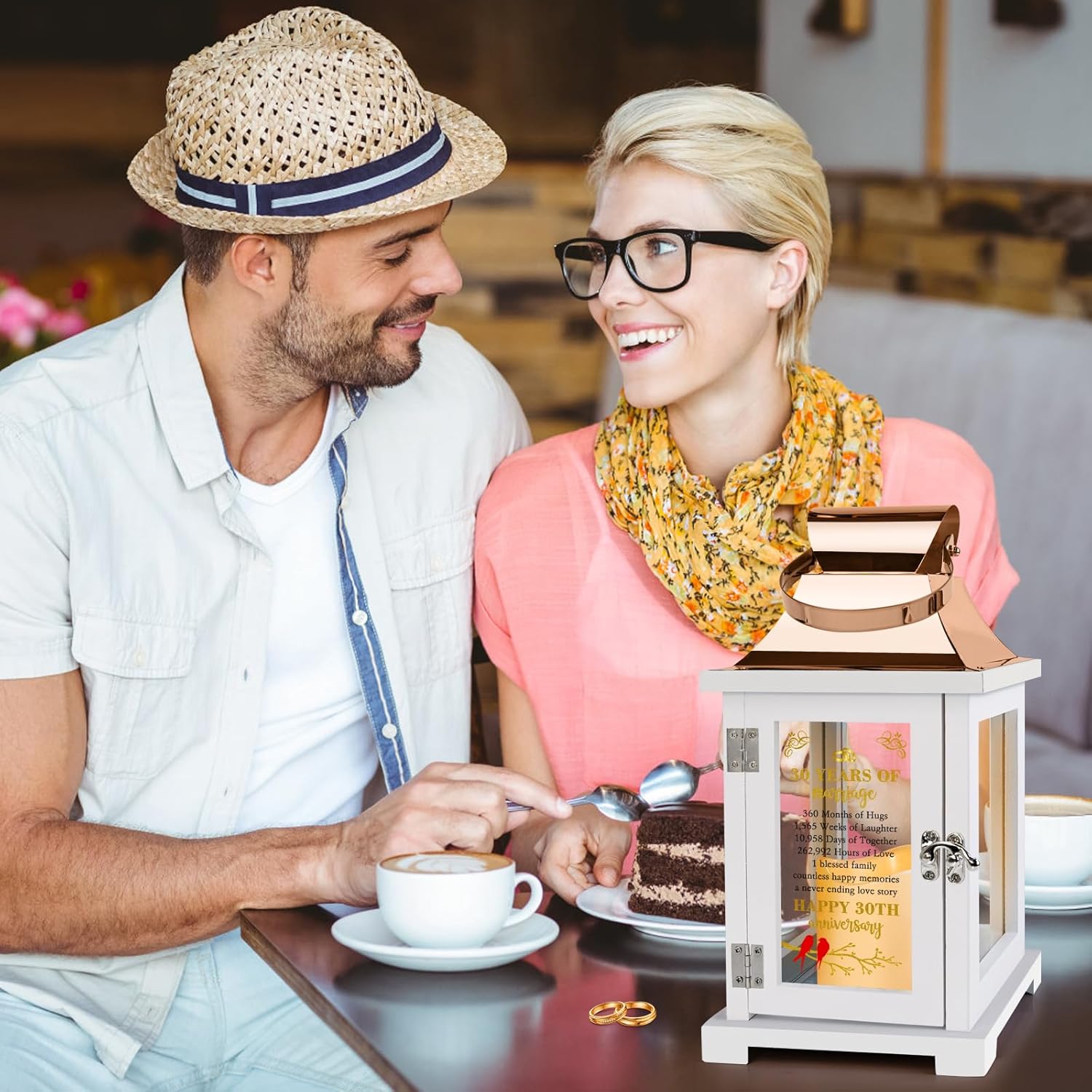 - Unique Design: This beautifully handcrafted wooden lantern can hang or sit anywhere and is the perfect 30th wedding anniversary gift ideas for a special couple. The classic design speaks of the precious golden years they have had as a married couple. This is a romantic anniversary to commemorate the 10,958 days we have spent together, may our love bloom forever! Size: 14 x 6 x 6 inch, built-in timed LED candle. The lantern comes with a blessing cards for easy gift giving.