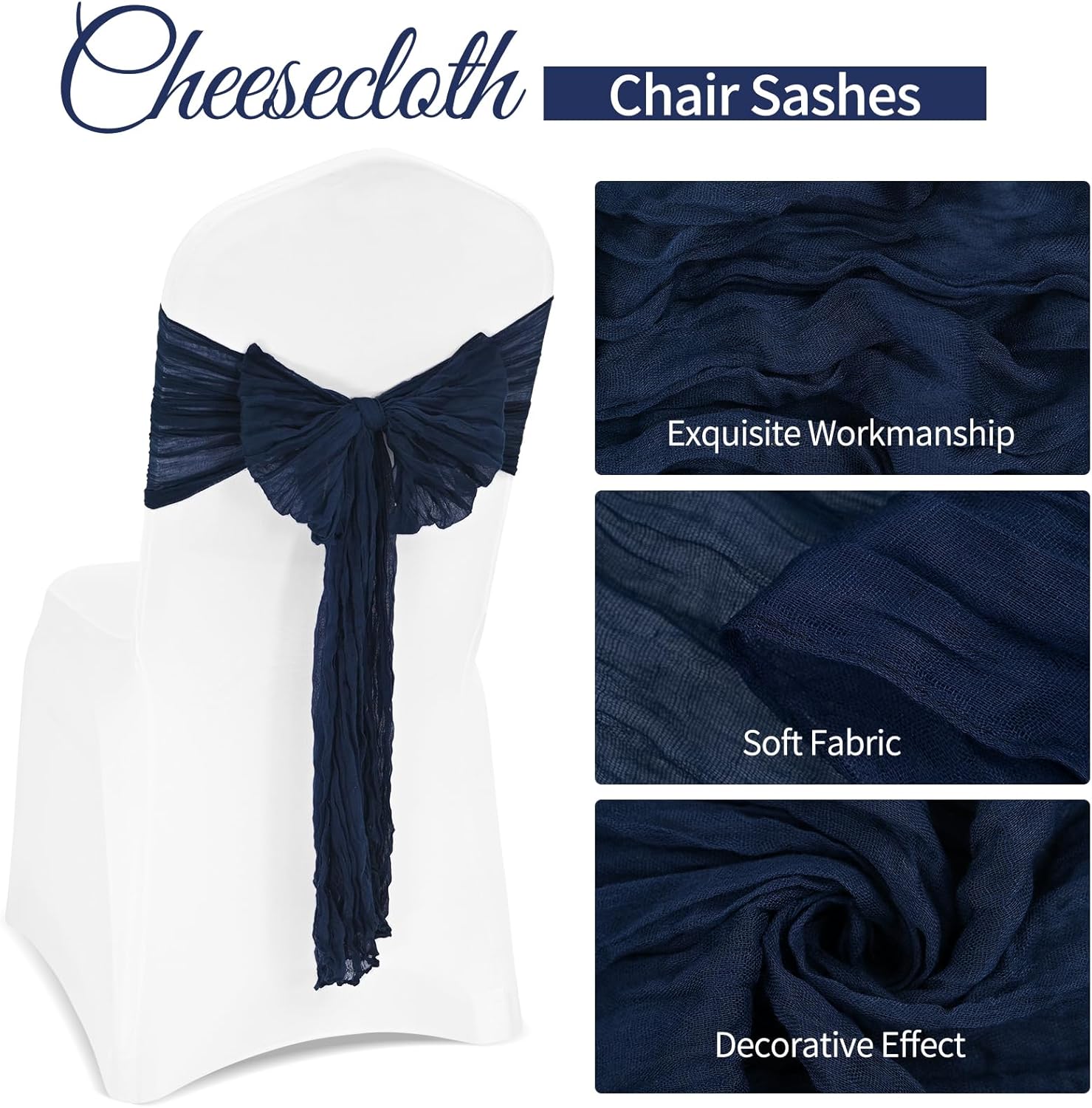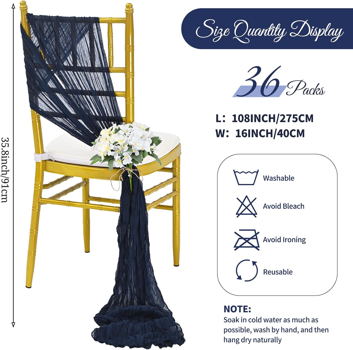 36 Pcs Navy Blue Cheesecloth Chair Sashes, 16 x 108 inch Gauze Fabric Washable Chair Sashes Bows Designed for Aisle Decorations Universal Chair Cover Decor for Wedding Reception Party Banquet