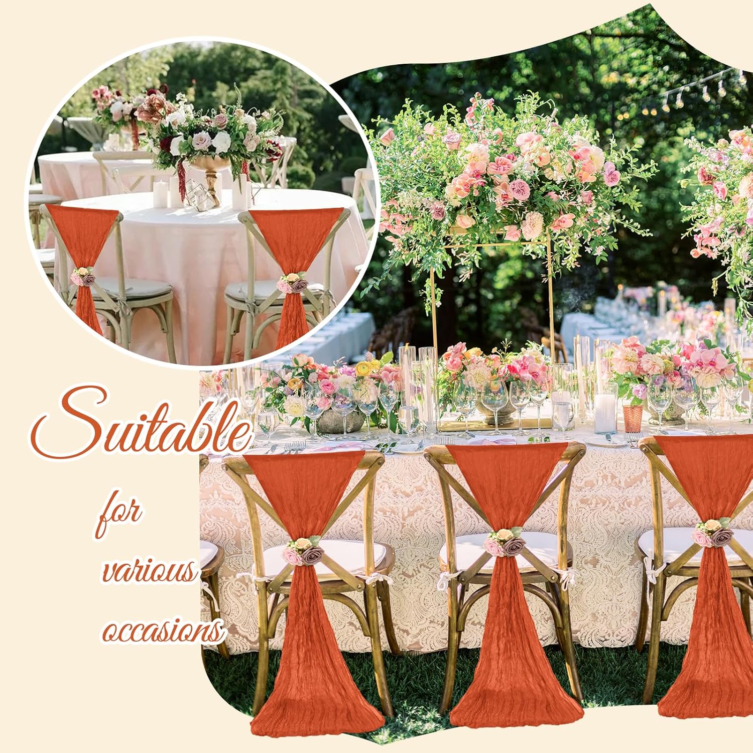 36 Pcs Burnt Orange Cheesecloth Chair Sashes, 16 x 108 inch Gauze Fabric Washable Chair Sashes Bows Designed for Aisle Decorations Universal Chair Cover Decor for Wedding Reception Party Banquet