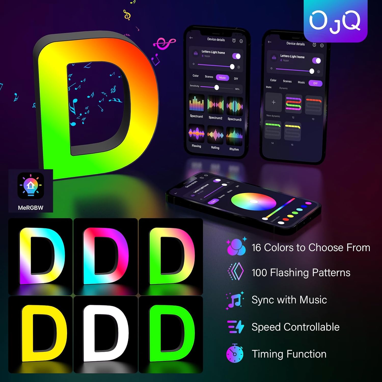 OJQ Light Up Letters LED Letter - Marquee Letters Room Decor Alphabet Letter Music Sync Color Change Colorful - Christmas Birthday Gifts for Girl - Teen Girls Gifts Party Home Wall Decor