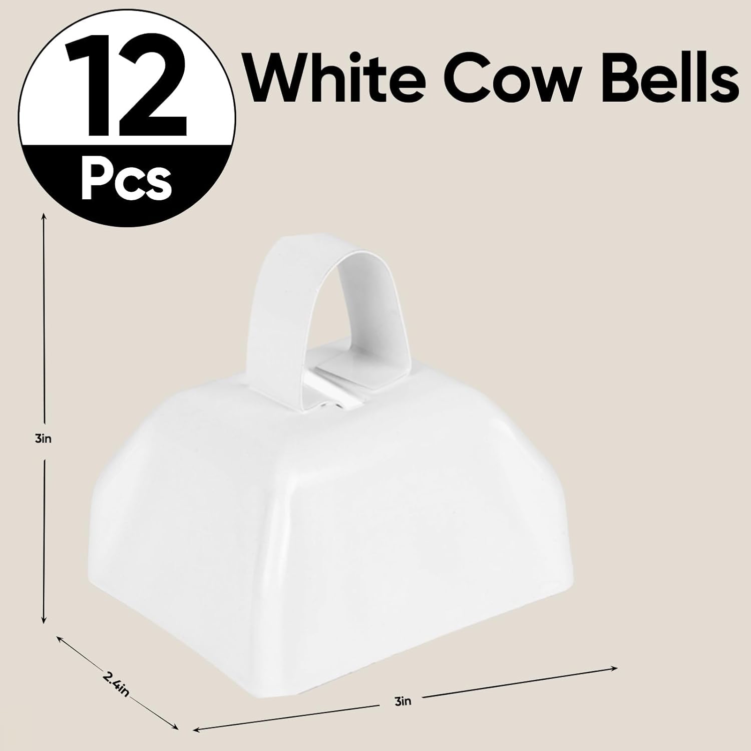 - Metal Cowbell with Handle: Coming with 12 pieces white cowbells bulk with top handles, easy to carry; When not in use, they can be hung on the wall or shelf to save space and decorate the room; Cowbell noisemakers can also add atmosphere and visual effects in Christmas, Halloween, weddings, and other special festivals