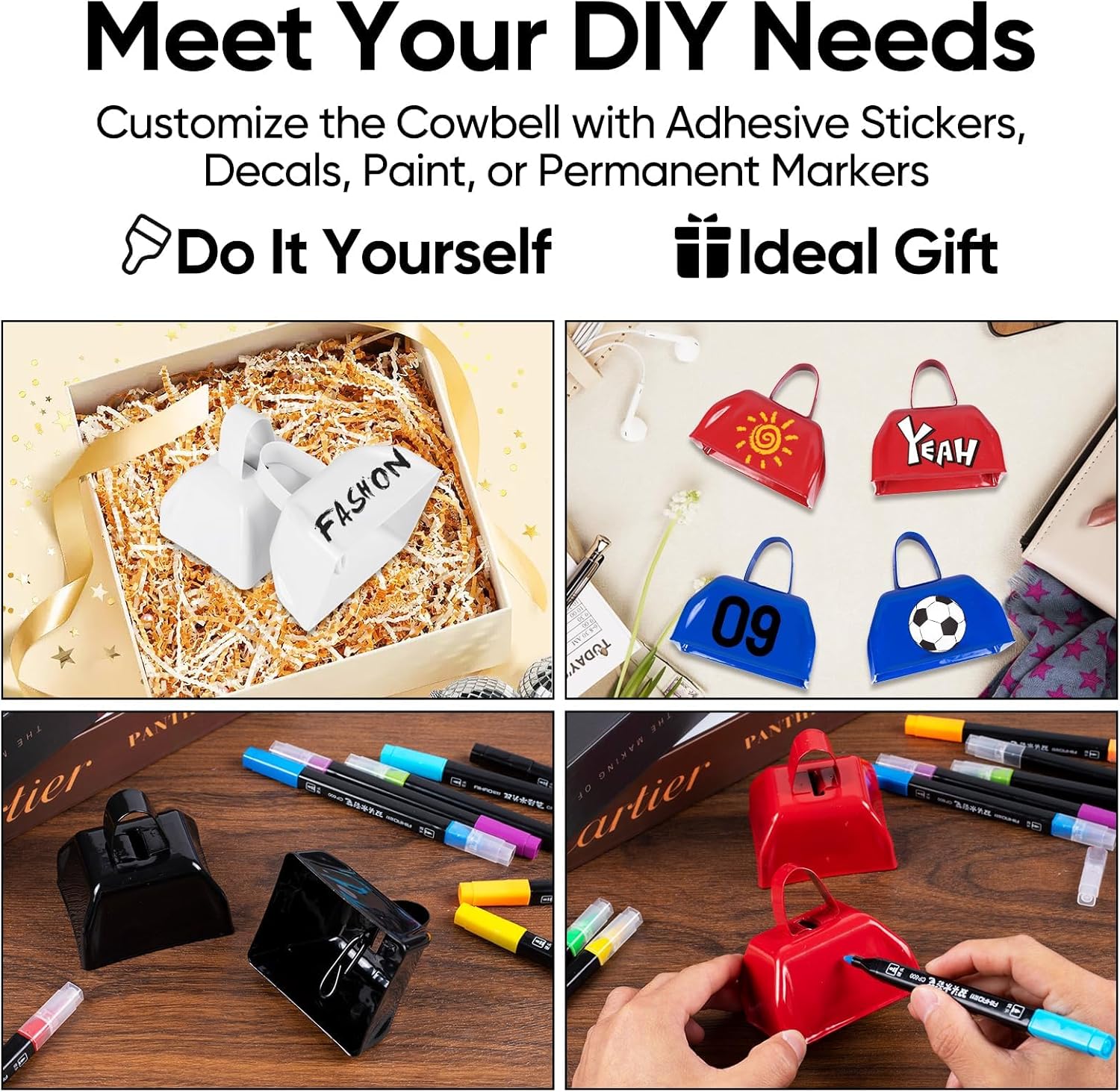 - Ideal Gift: This cowbell noise maker is the perfect Christmas or birthday gift for your family, friends and elderly parents; It has a flat surface and you can make your own unique cow bell by decorating them with paints, markers or stickers