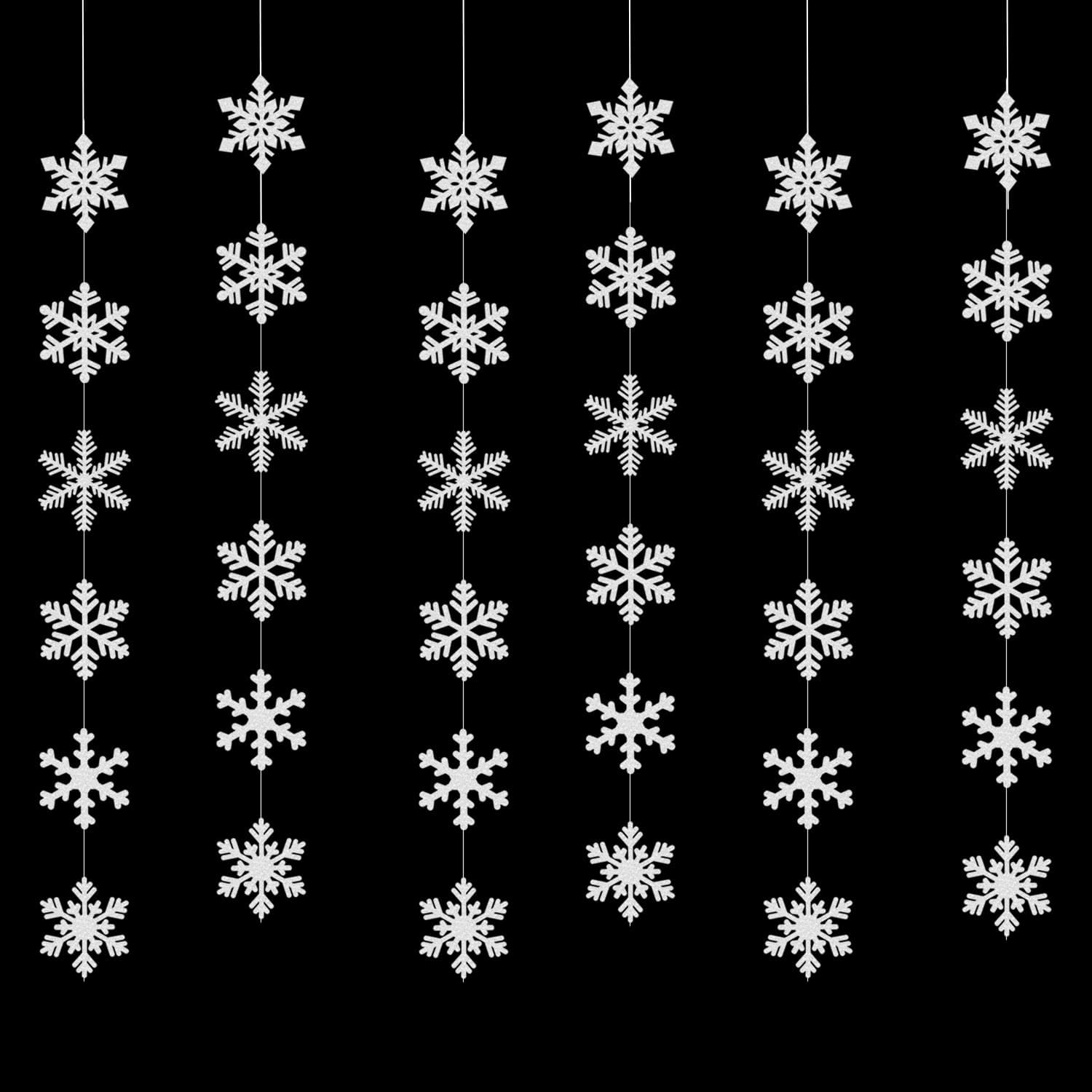 - 【Package Contains】6 sets of the party banner garland,each is 5.41feet/ 1.65 meters long, total length is 32.46 feet/ 9.9 meters.Every Banner has 6pcs snowflake,the size is 10cm(3.93").