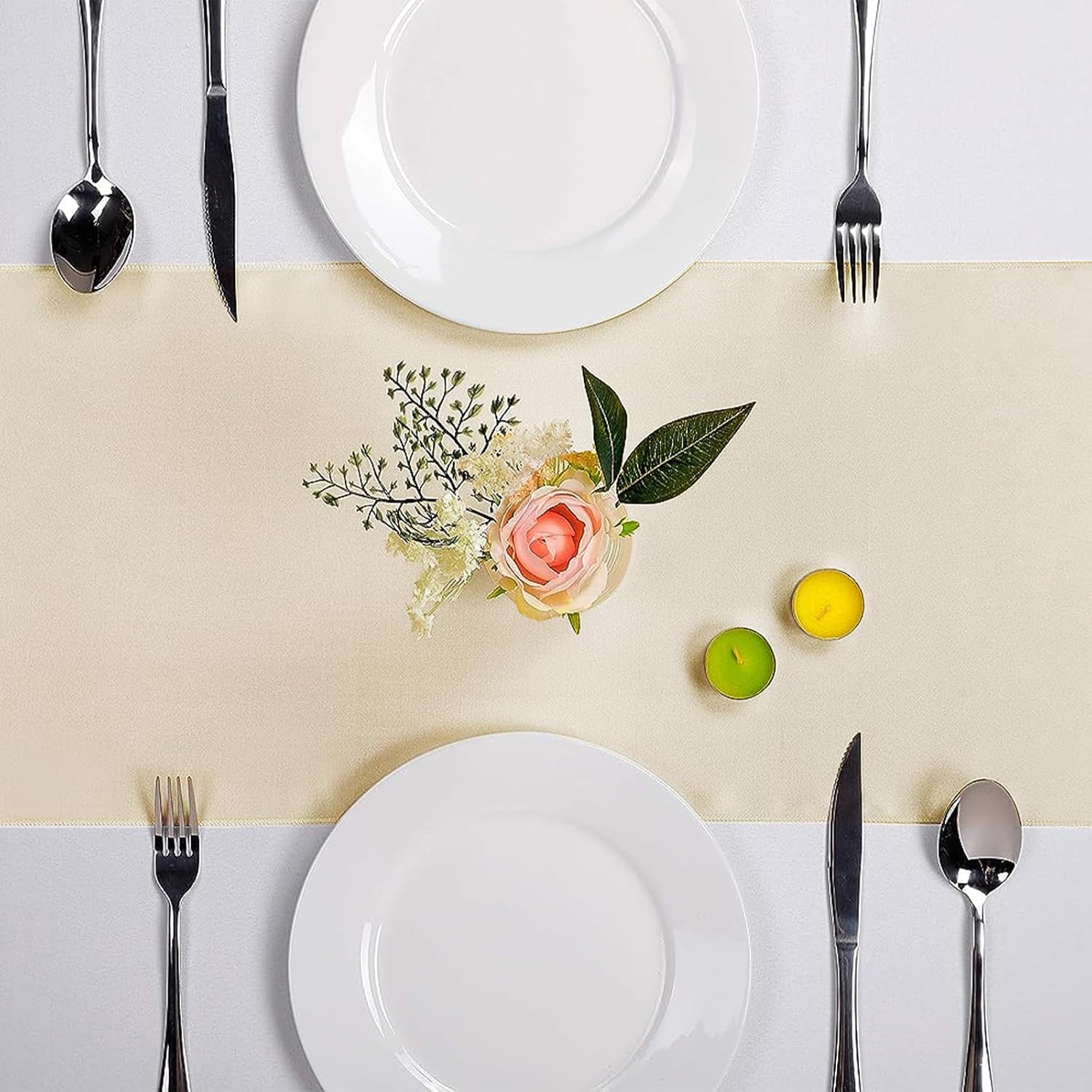 5-Pack Satin Table Runner Champagne 12 x 108 inches Long, Table Runners for Wedding, Birthday Parties, Banquets Decorations(5 Pack, 12x108 Inch, Champagne
