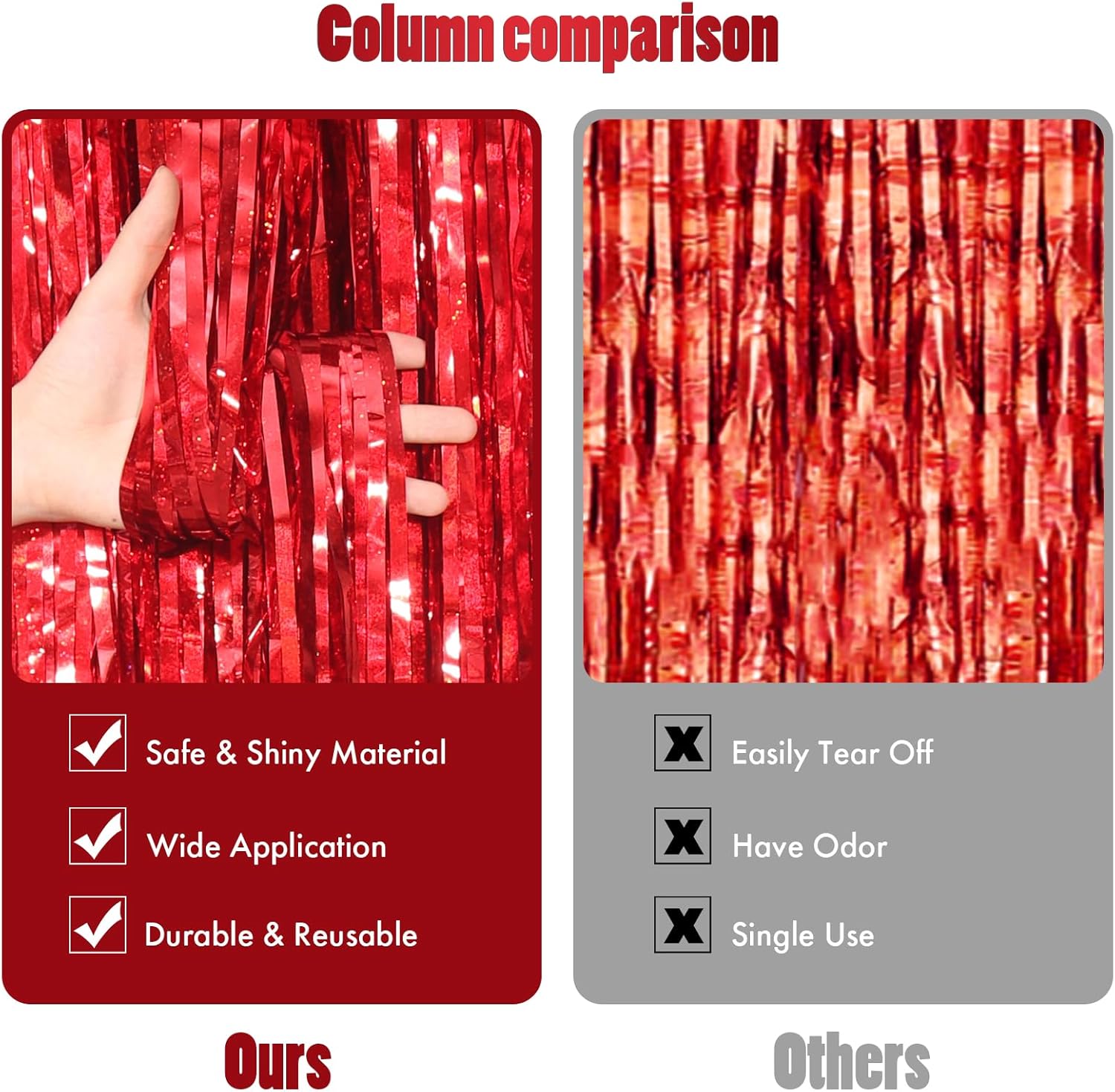 - 🎉PACKAGE INCLUDED : 2 pack of red foil fringe curtains, the size of each tinsel curtain is 3.3 ft x 8.2 ft, enough length for hanging on a door or covering a wall fully, suitable for any parties.