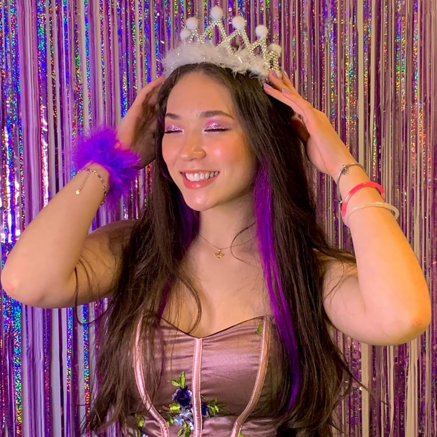 - 🎉SAFE & SHINY MATERIAL- This Glitter purple tinsel backdrop is made of high-quality shiny tinsel, non-toxic, odorless, and non-fading, safe for families with children and pets. Just transform your home into a shining streamers happy birthday decorations, and enjoy the party.