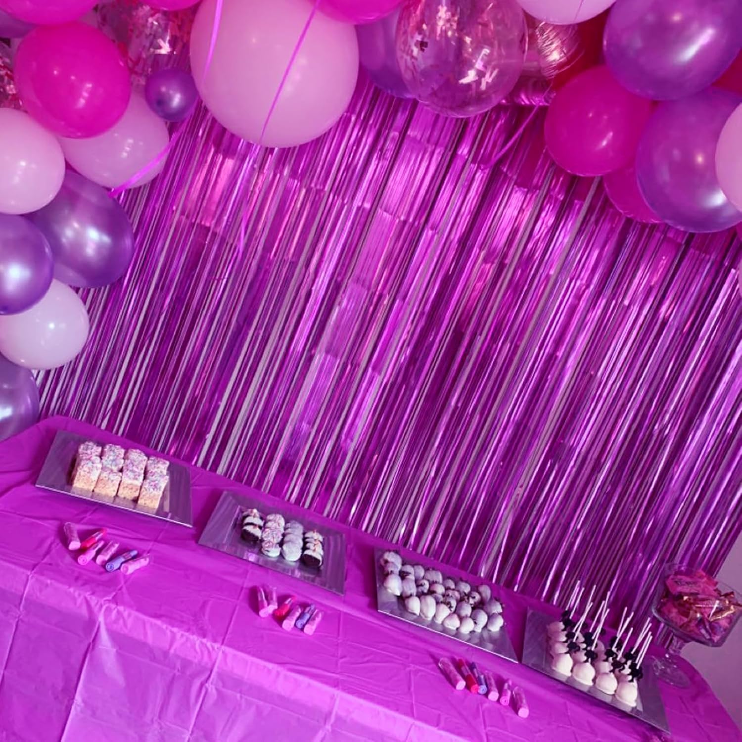 - 🎉SAFE & SHINY MATERIAL- This hot pink tinsel backdrop is made of high-quality shiny tinsel, non-toxic, odorless, and non-fading, safe for families with children and pets. Just transform your home into a shining streamers happy birthday decorations, and enjoy the party.